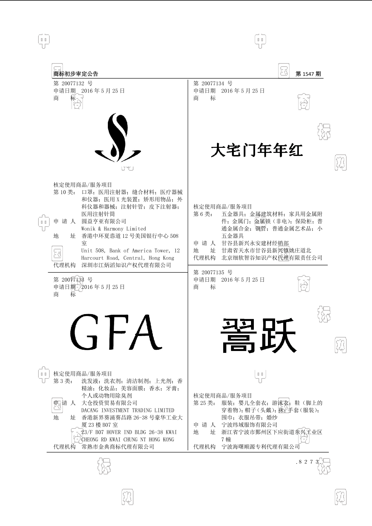 初审公告期号:1547