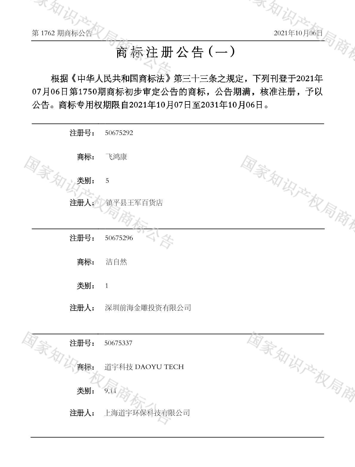 有效期限:2031-10-06 组合类型:中文注册号:50675292