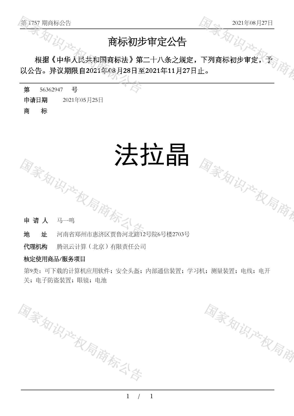 有效期限: 组合类型:中文注册号:56362947