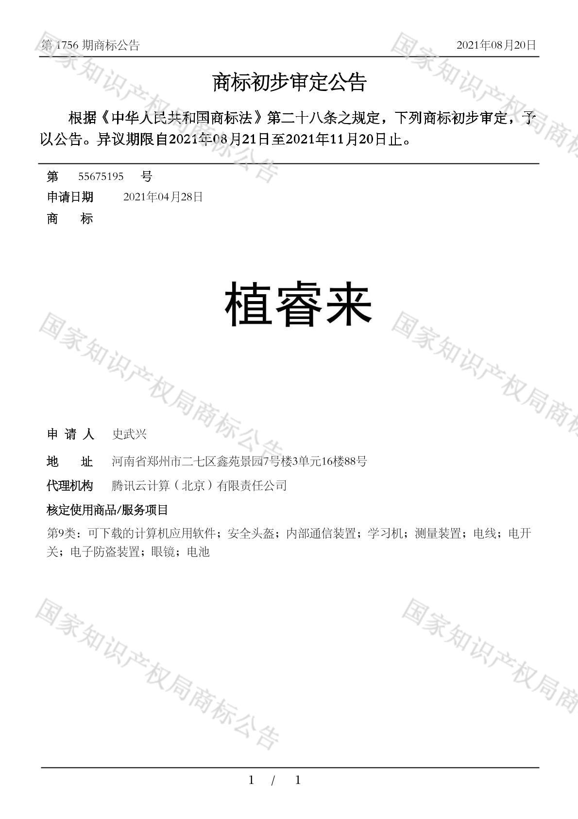 有效期限:2031-11-20 组合类型:中文注册号:55675195