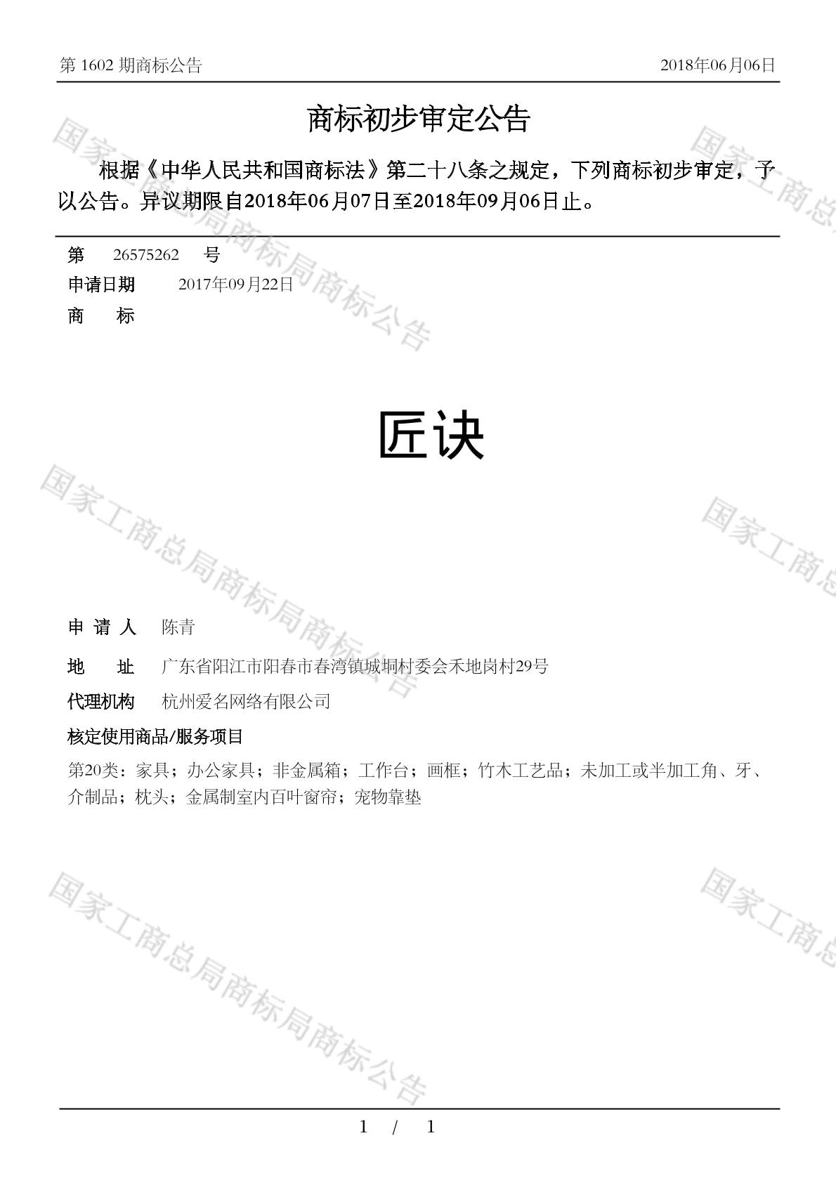 初审公告日期:2018-06-06