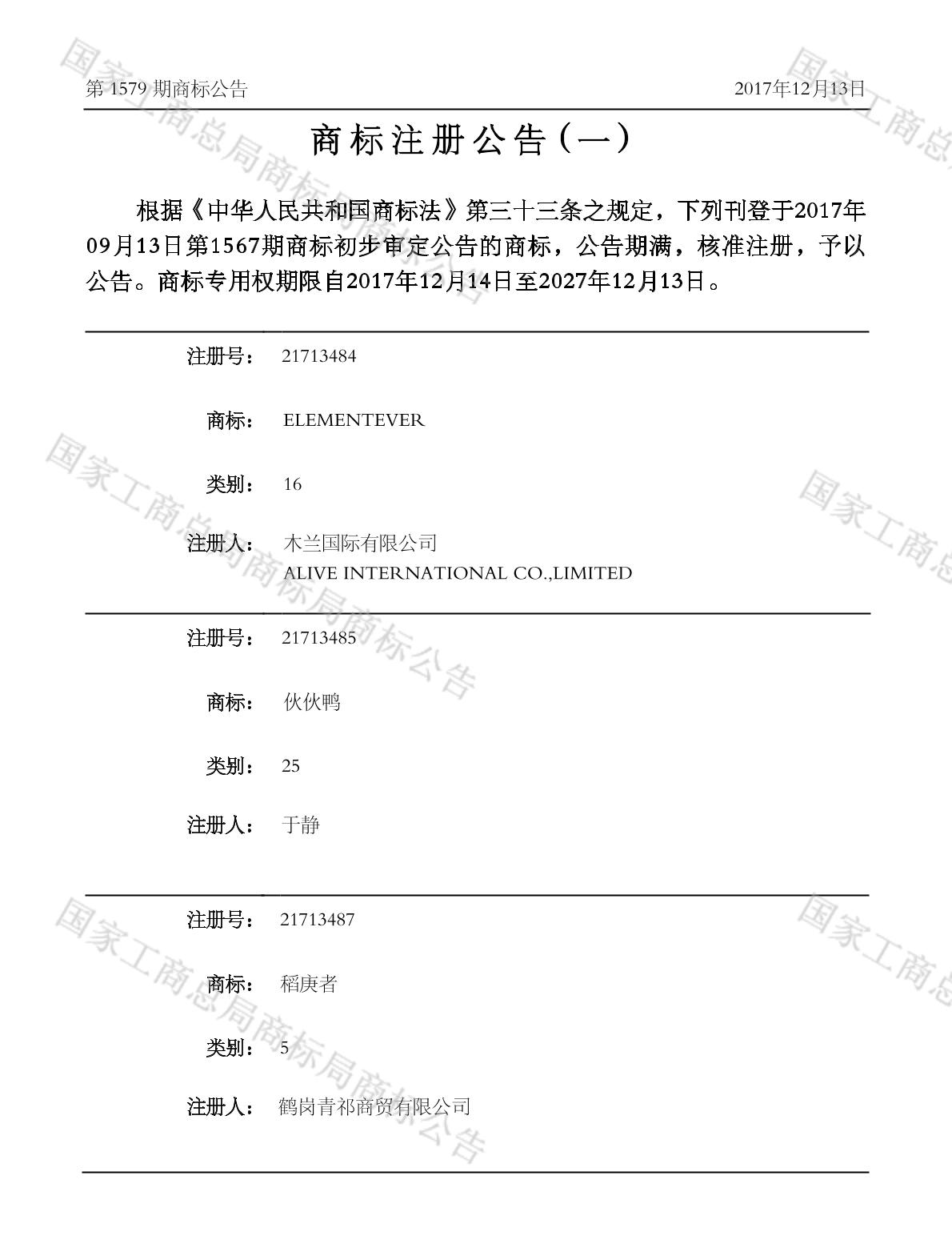 注册公告期号:1579