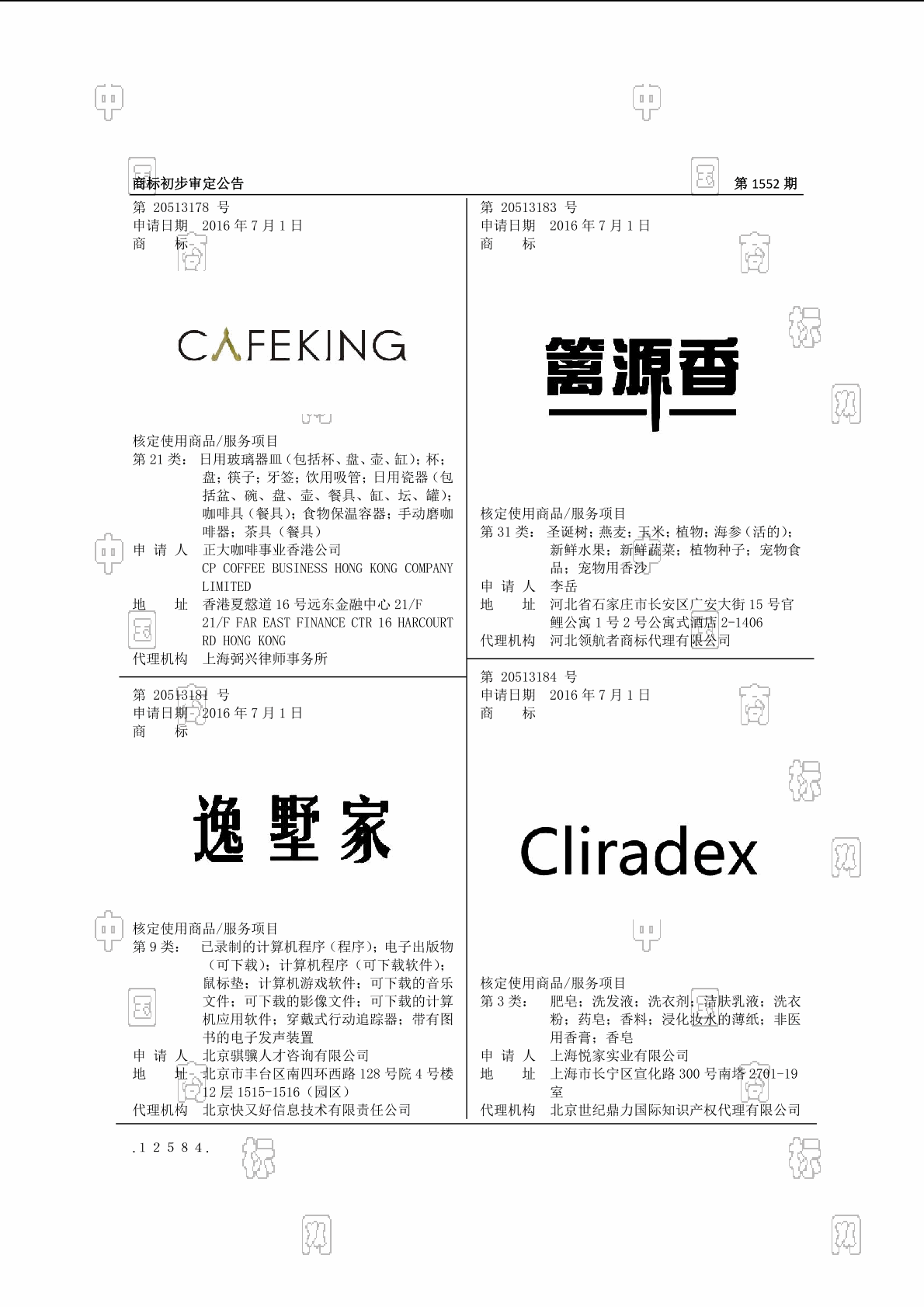 初审公告期号:1552