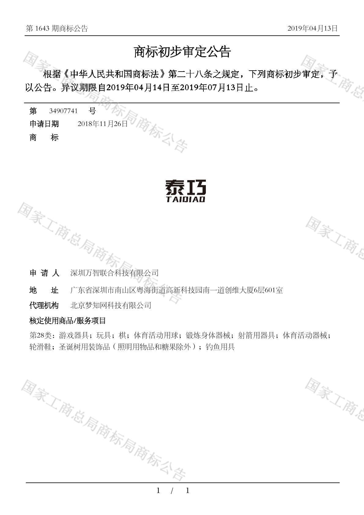 有效期限:2029-07-13 组合类型:中文注册号:34907741