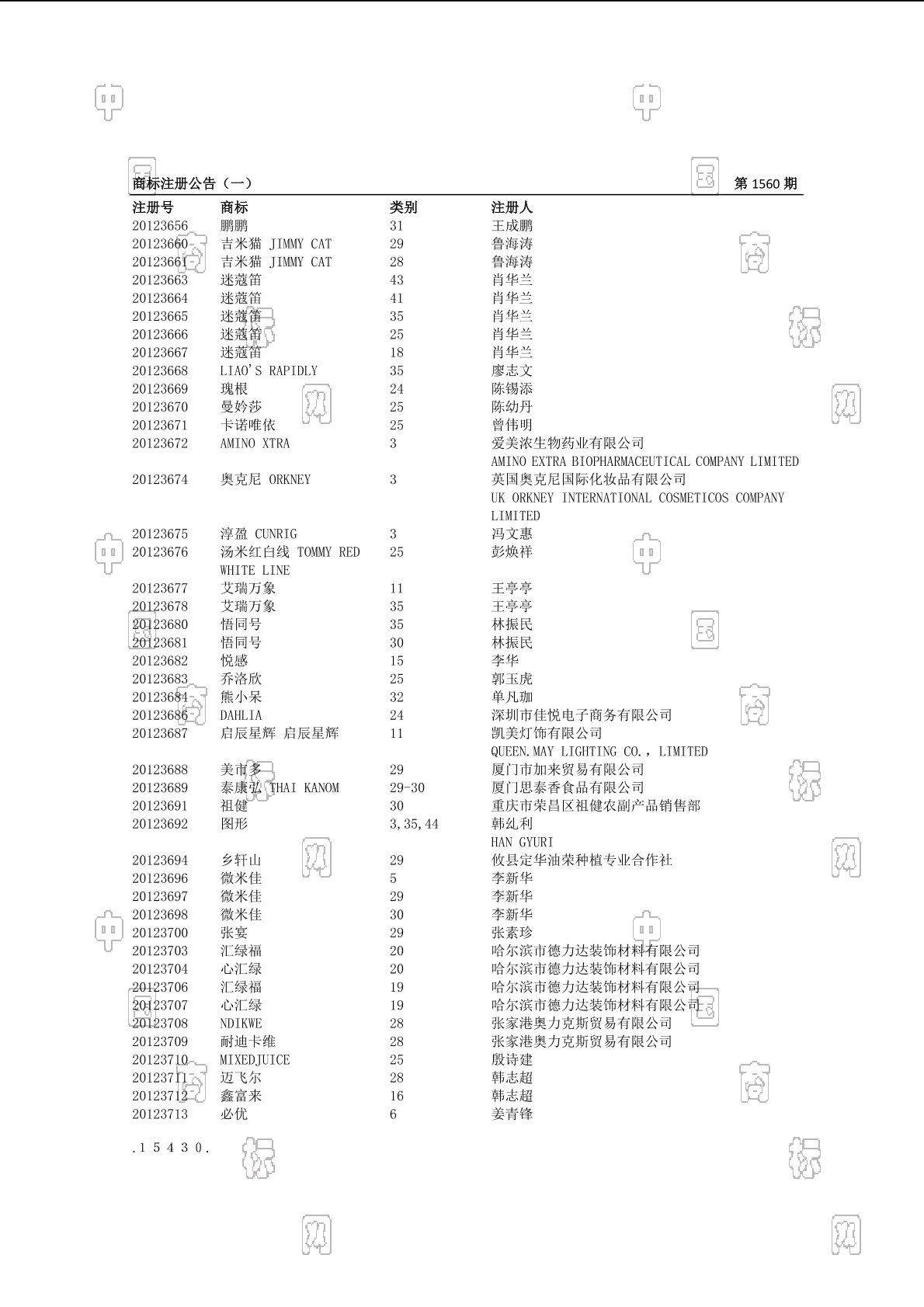 注册公告期号:1560