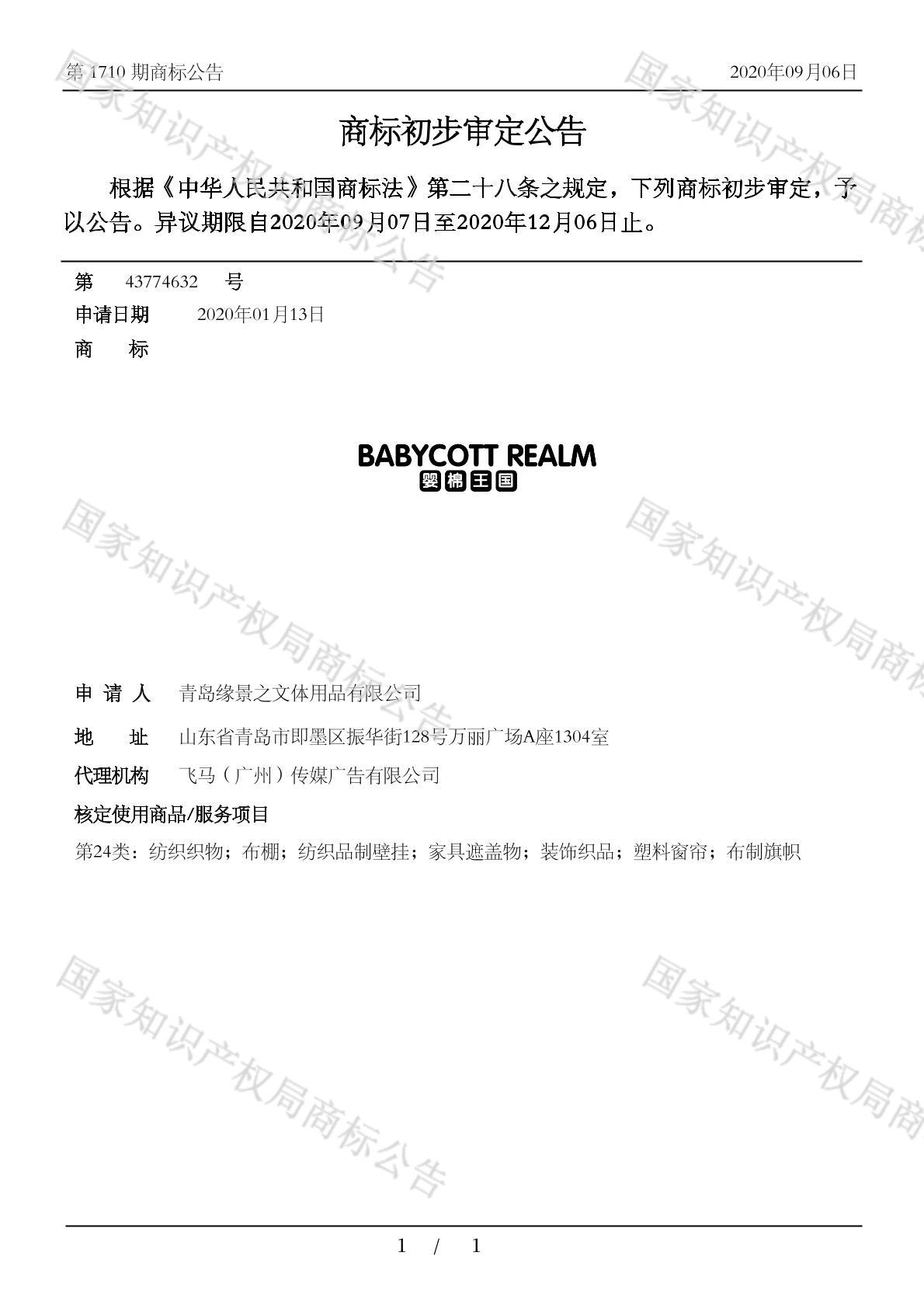 您当前位置:首页商标转让24类商标婴棉王国 BABYCOTT REALM