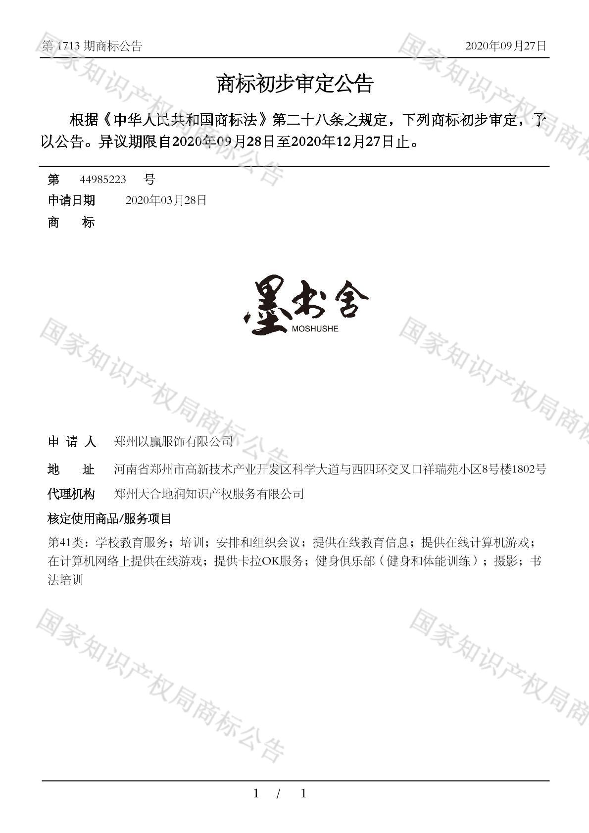 有效期限:2030-12-27 组合类型:中文注册号:44985223