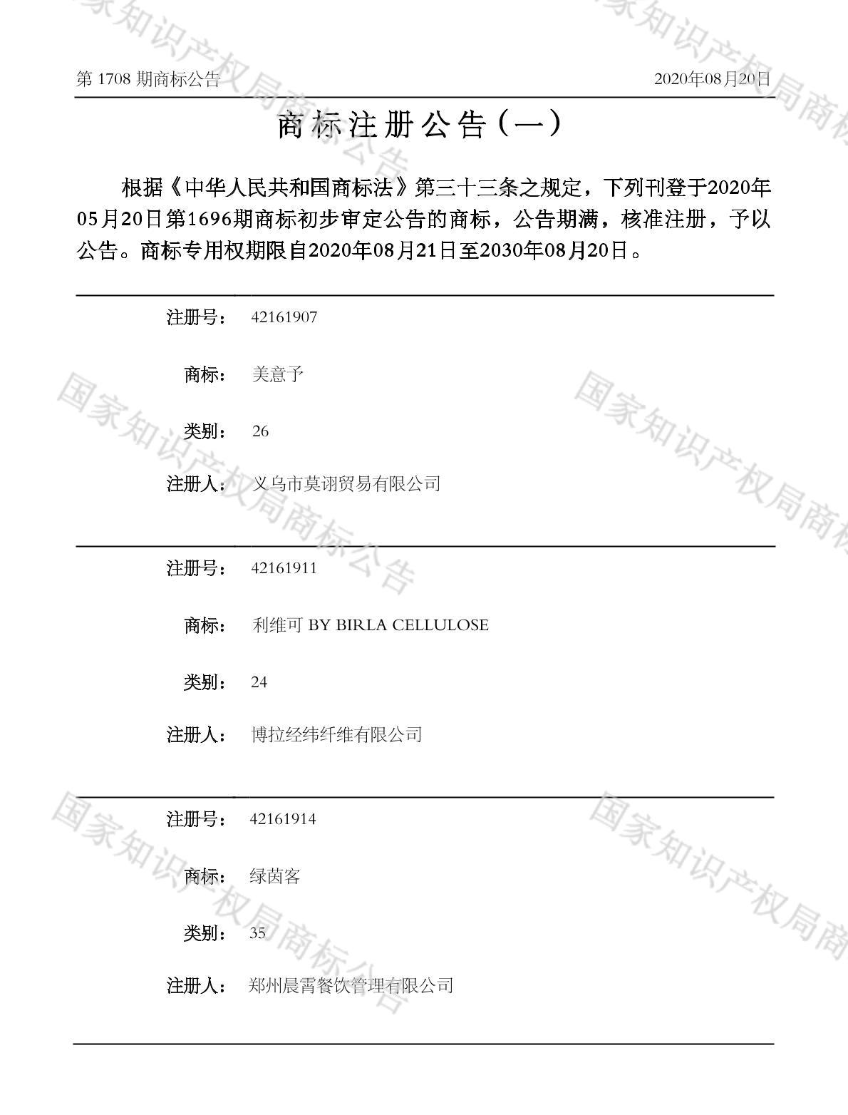 有效期限:2030-08-20 组合类型:中文注册号:42161914