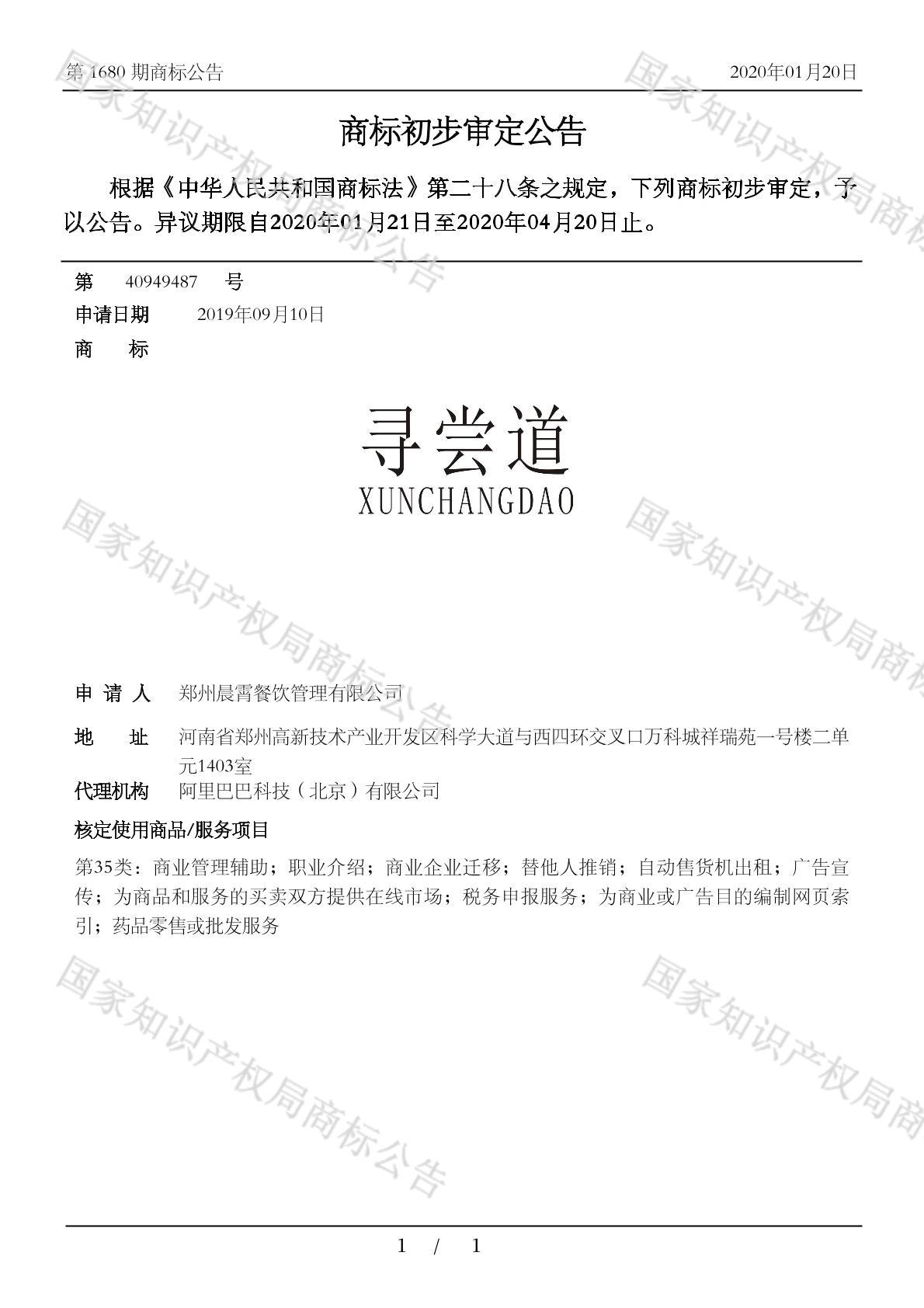 初审公告期号:1680