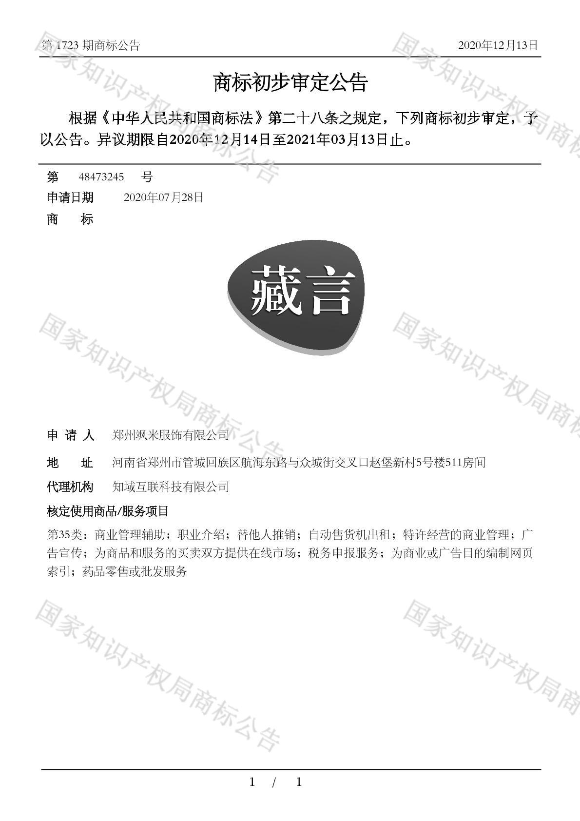 有效期限:2031-03-13 组合类型:中文注册号:48473245