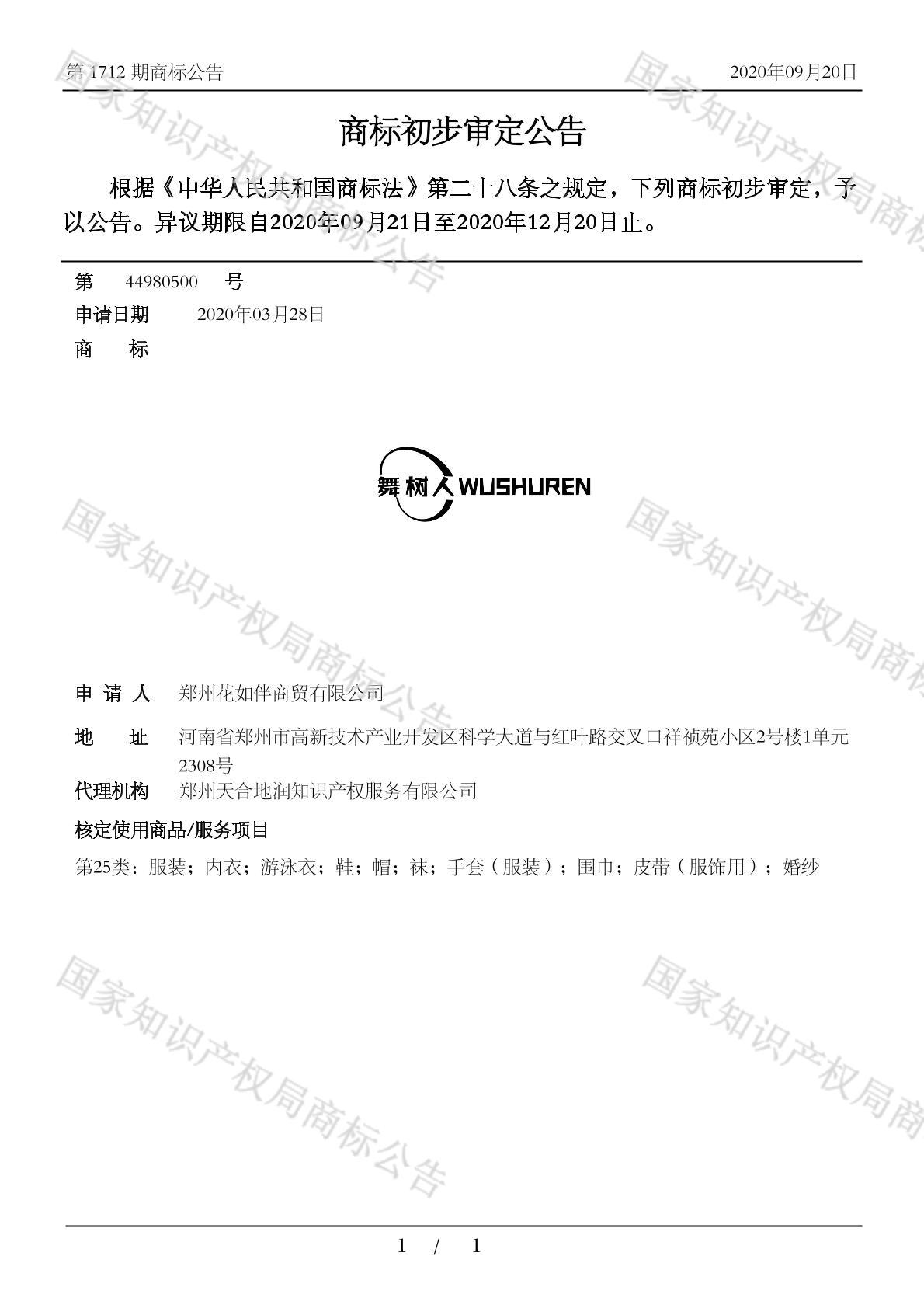 有效期限:2030-12-20 组合类型:中文注册号:44980500