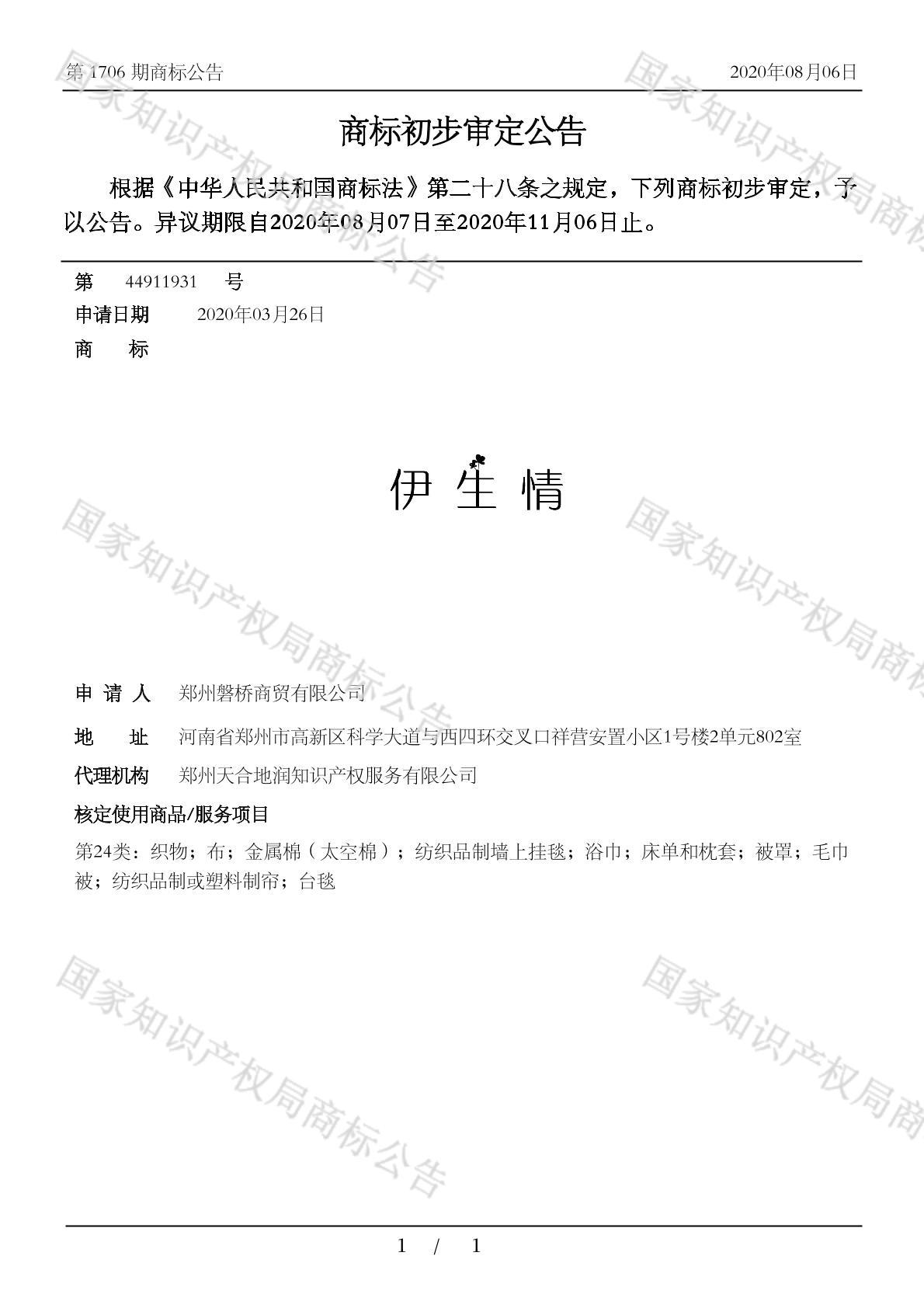 有效期限:2030-11-06 组合类型:中文注册号:44911931