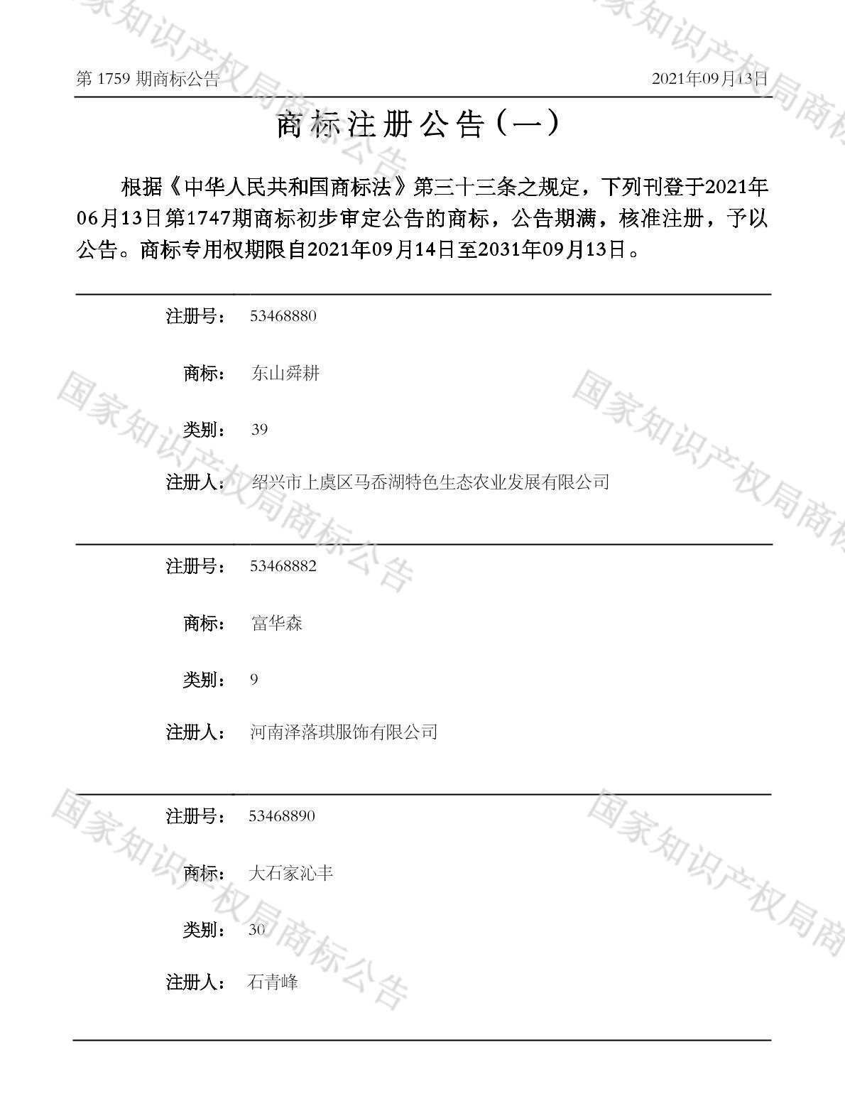 注册公告期号:1759