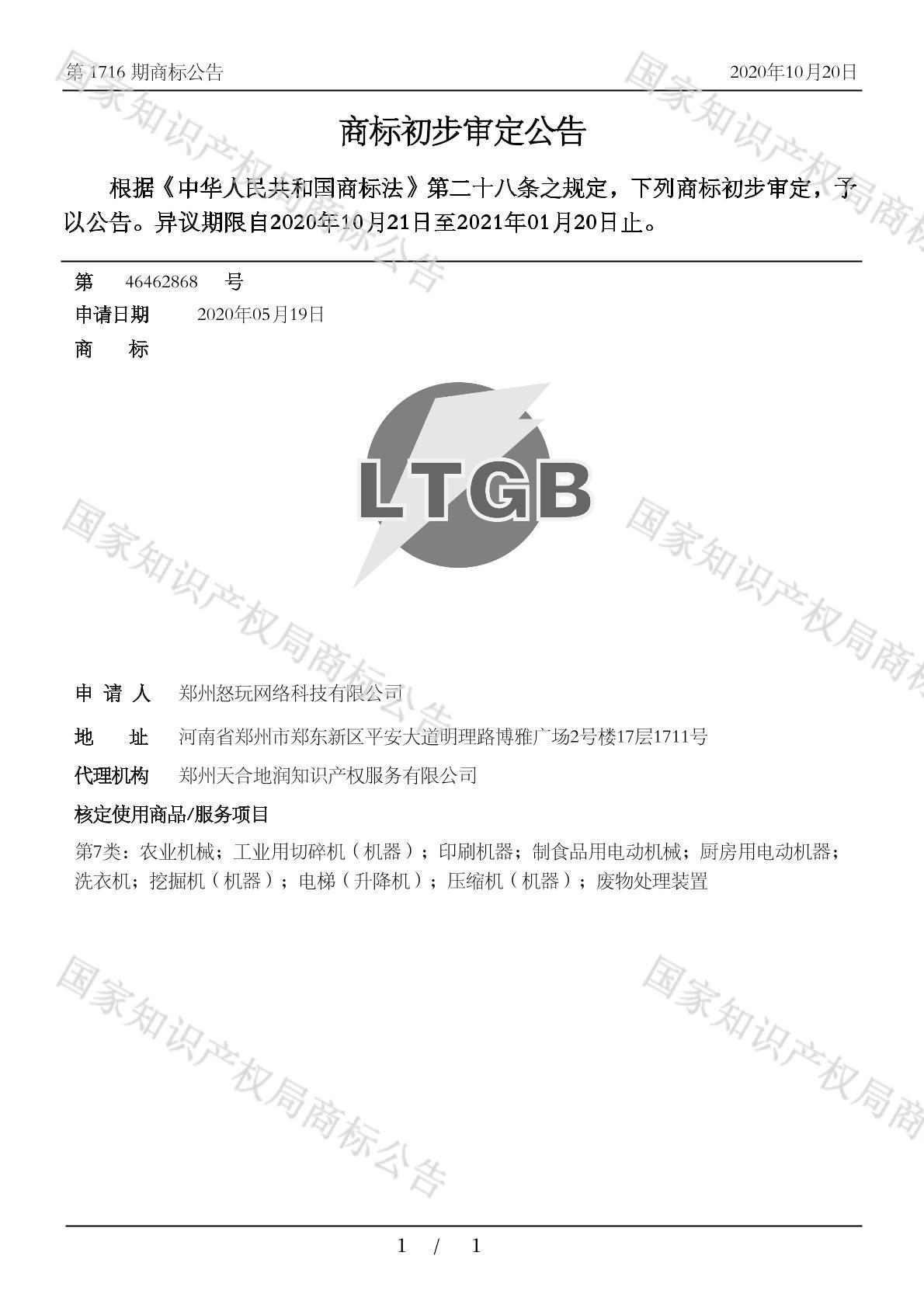 有效期限:2031-01-20 组合类型:中文注册号:46462868