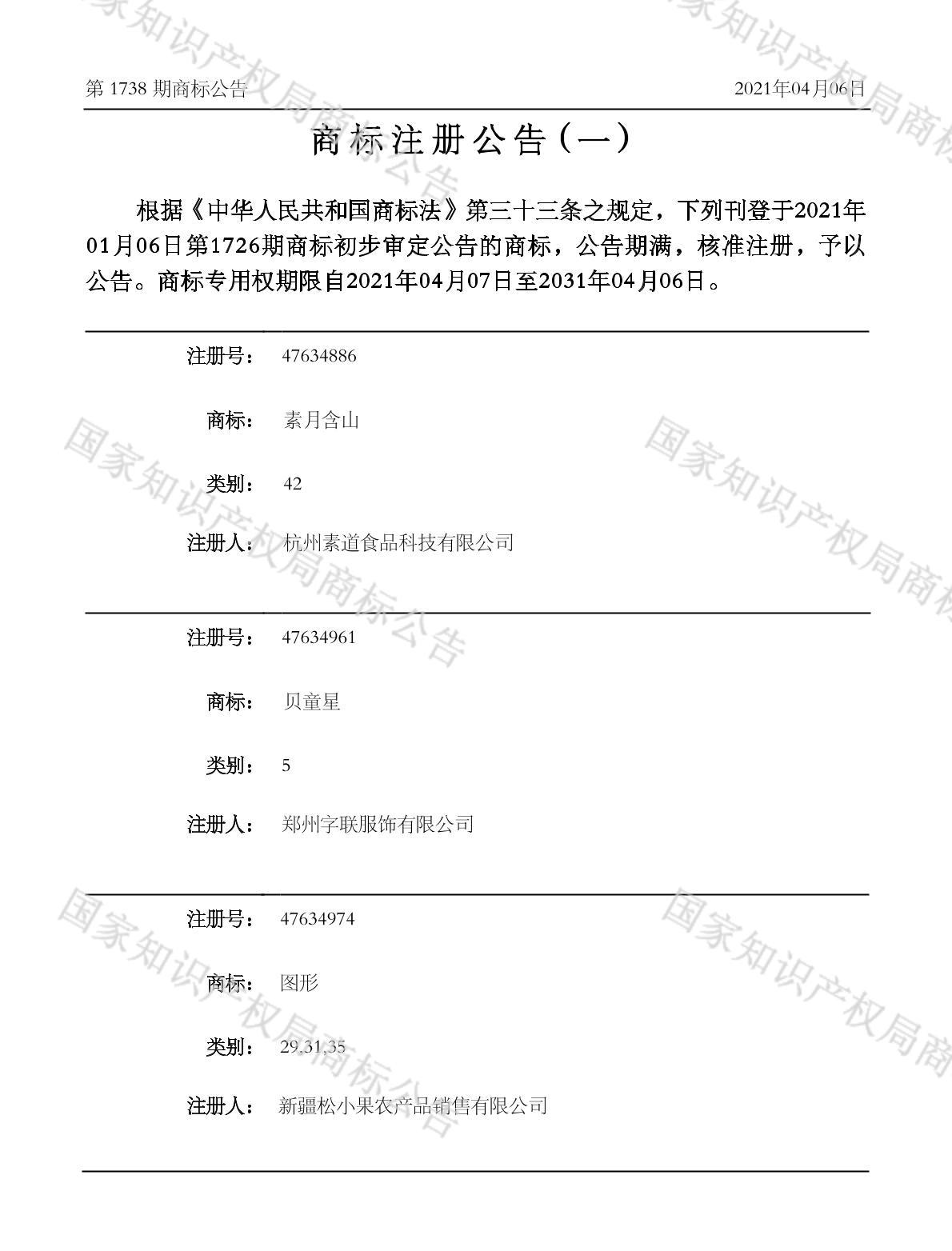 有效期限:2031-04-06 组合类型:中文注册号:47634961