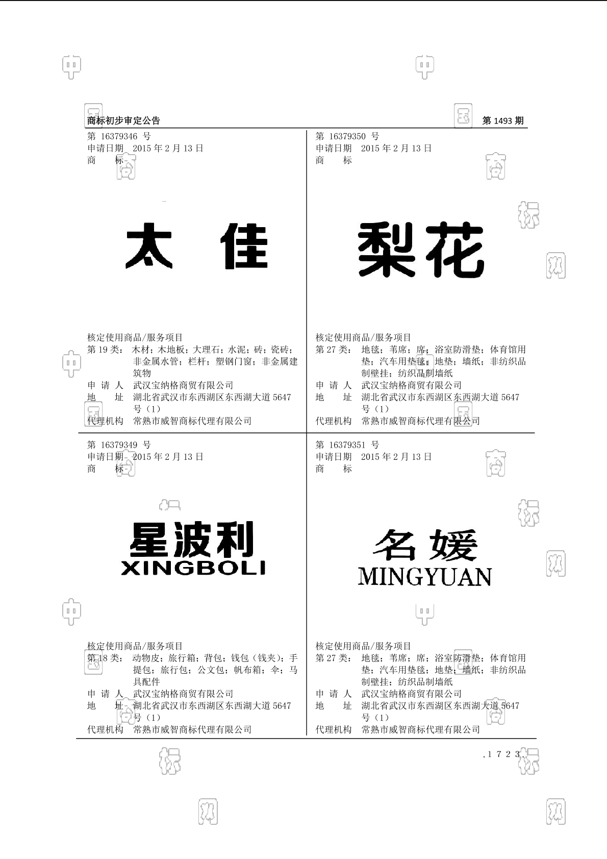 适用项目: 地毯 苇席 体育馆用垫 地垫 汽车用垫毯 浴室防滑垫 墙纸 纺织品制墙纸 非纺织品制壁挂 所有项目