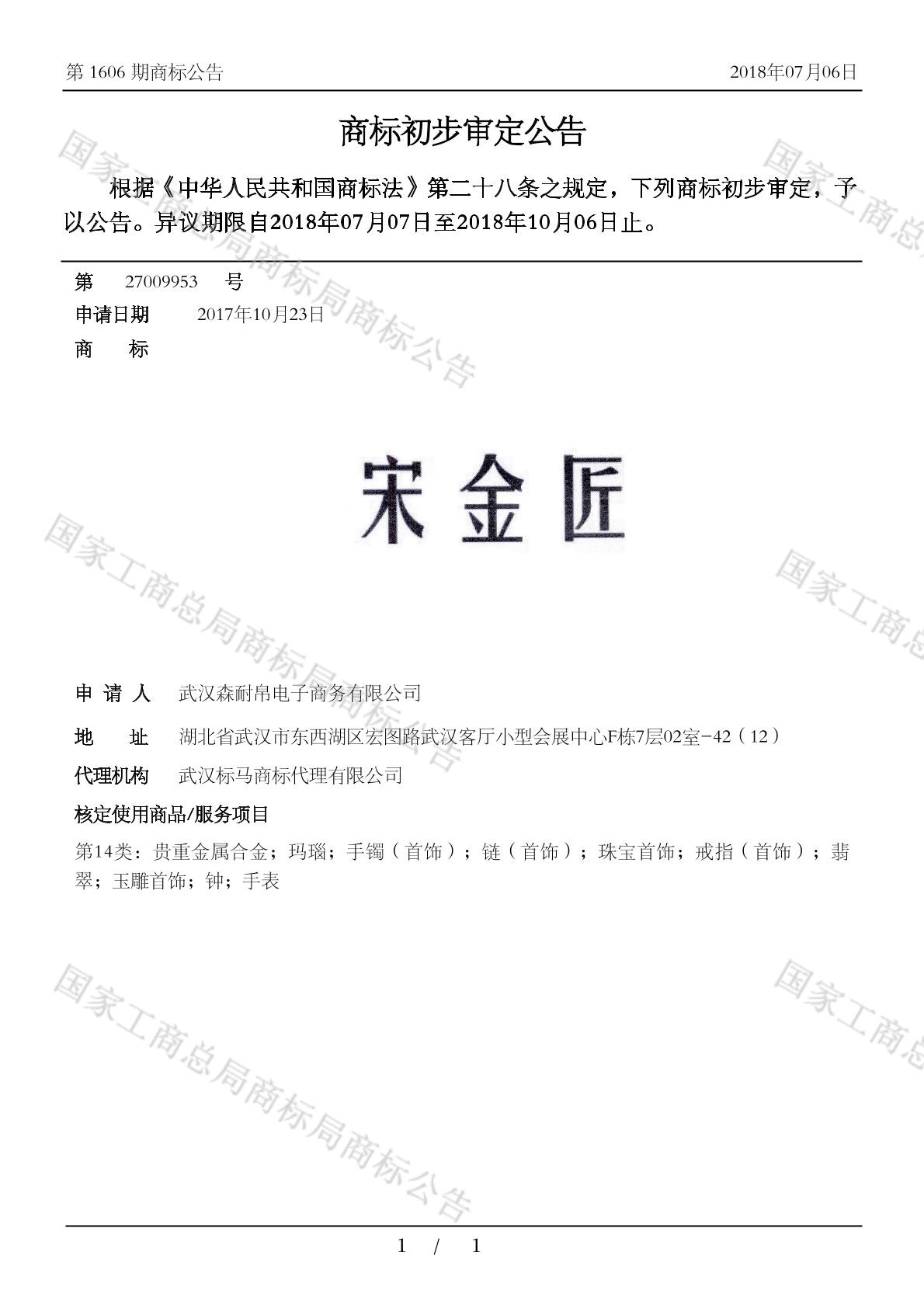 您当前位置:首页商标转让14类商标宋金匠