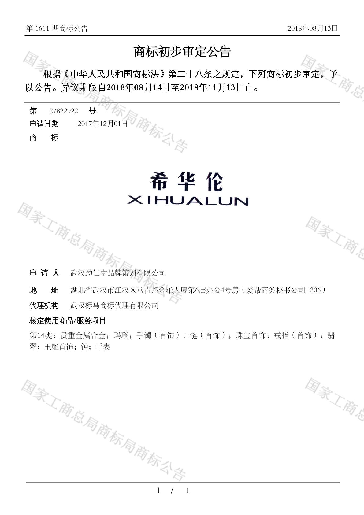 初审公告日期:2018-08-13