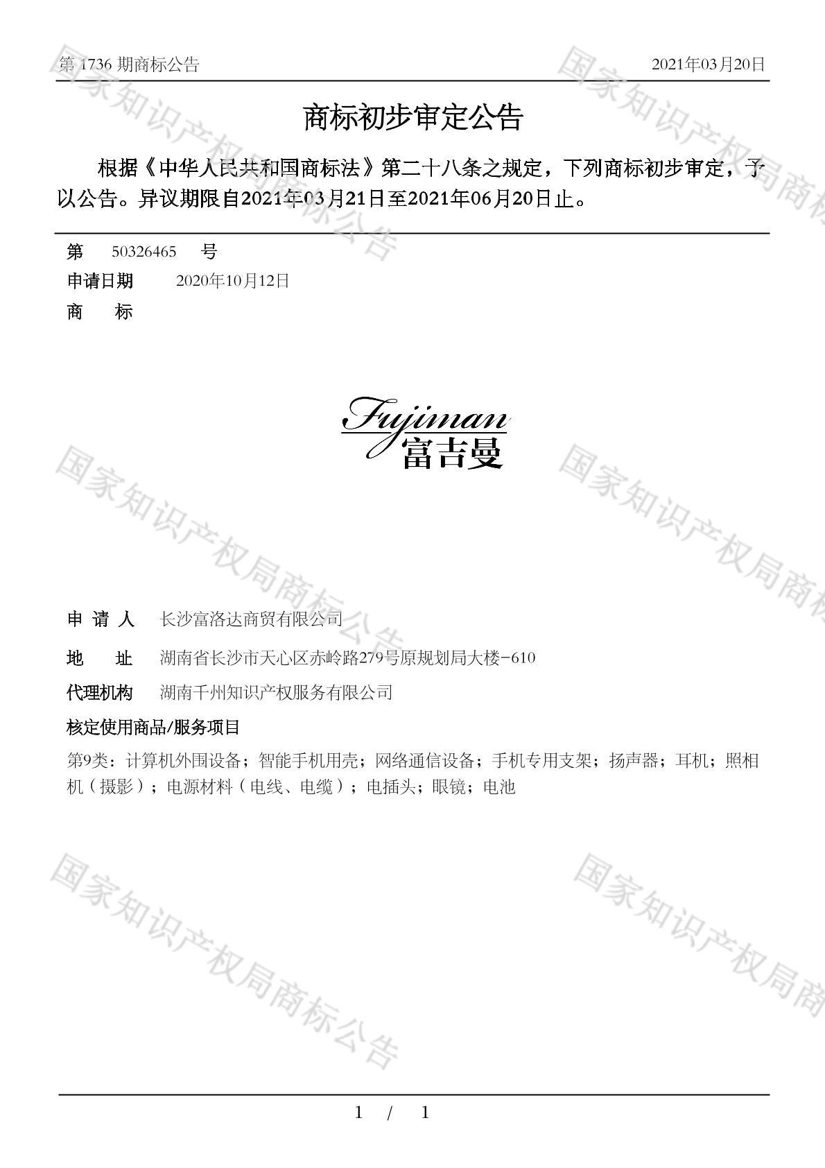 有效期限:2031-06-20 组合类型:中文注册号:50326465