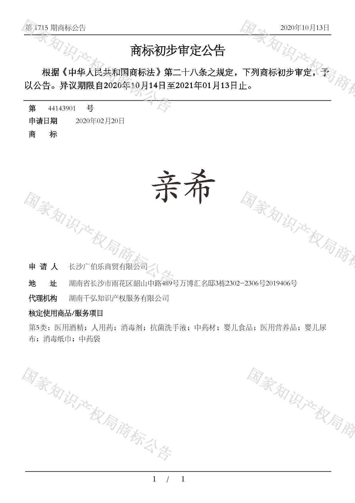 有效期限:2031-01-13 组合类型:中文注册号:44143901