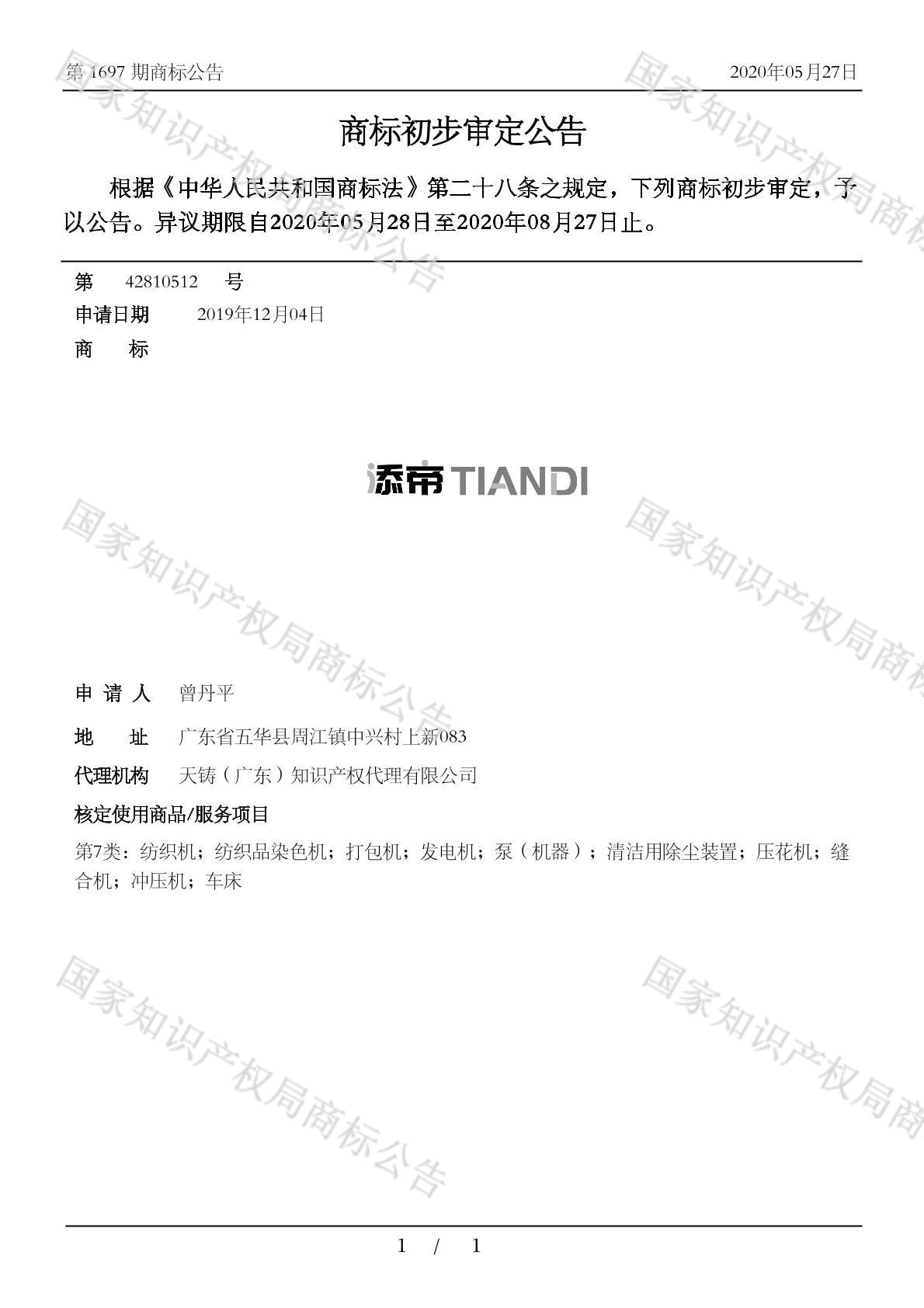 您当前位置:首页商标转让7类商标添帝