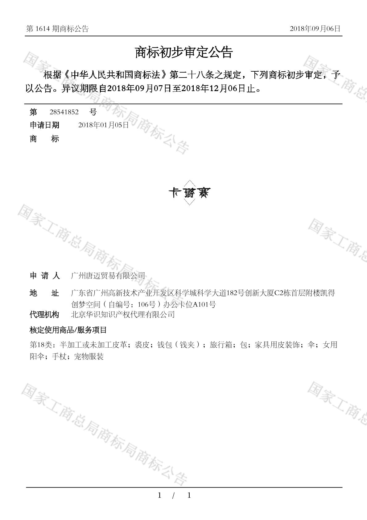 有效期限:2028-12-06 组合类型:中文注册号:28541852