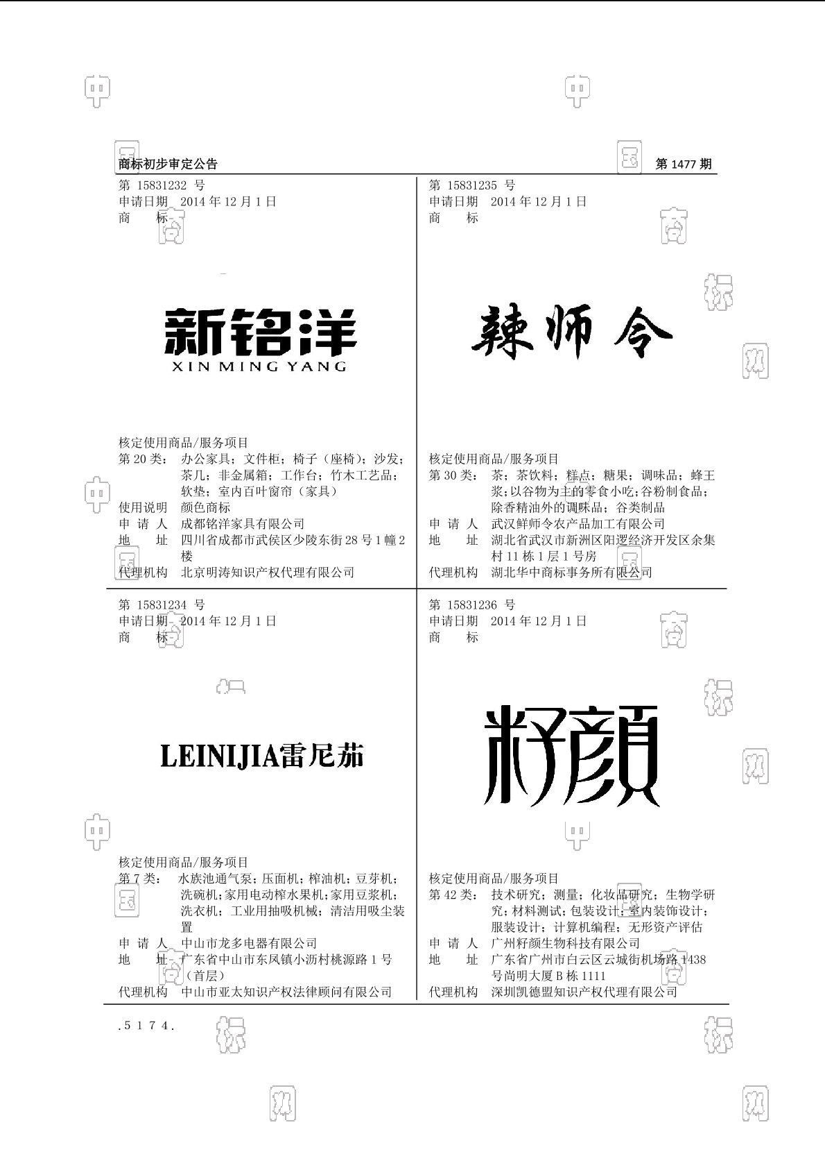 初审公告期号:1477