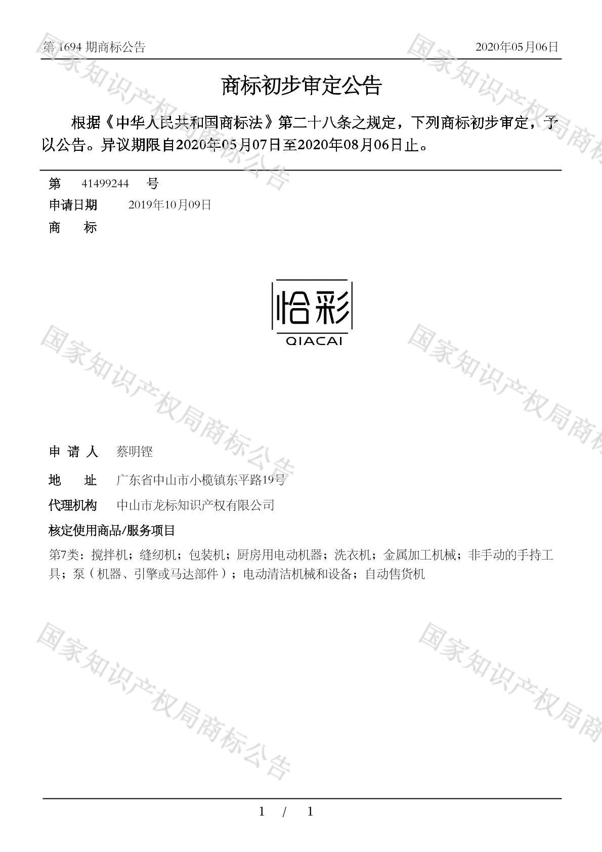 有效期限:2030-08-06 组合类型:中文注册号:41499244