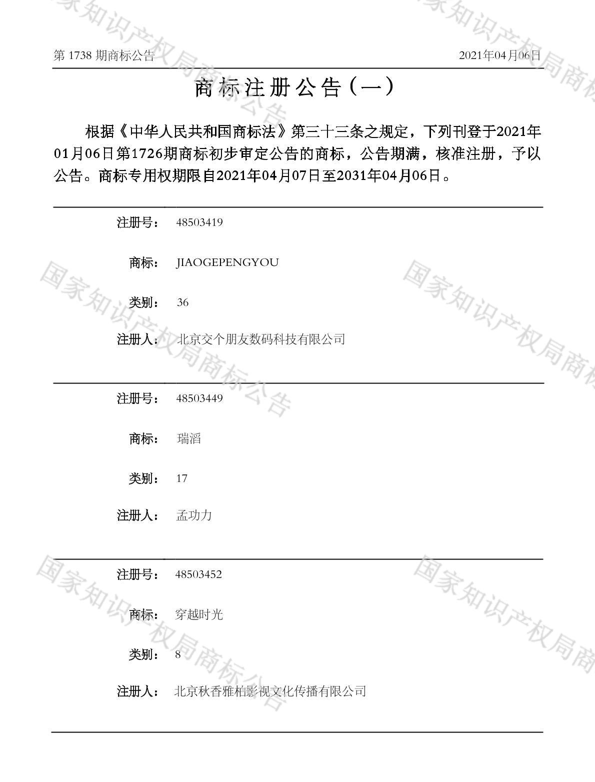 有效期限:2031-04-06 组合类型:中文注册号:48503449