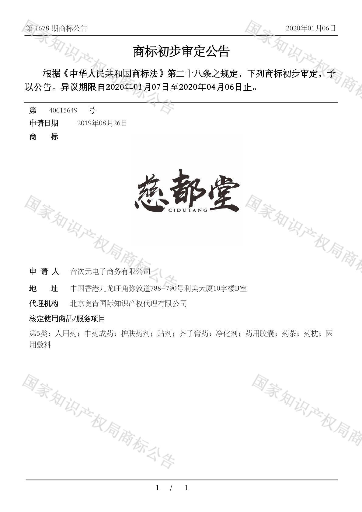 有效期限:2030-04-06 组合类型:中文注册号:40615649