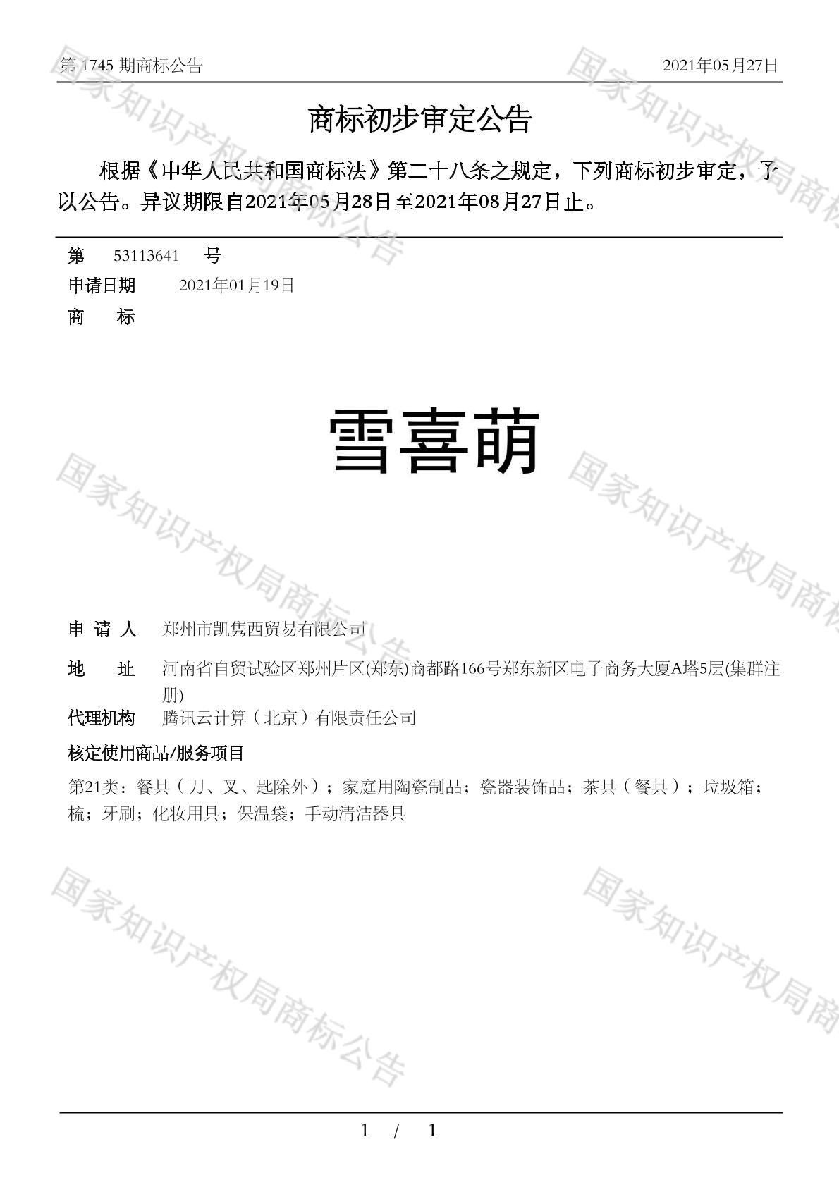 有效期限:2031-08-27 组合类型:中文注册号:53113641