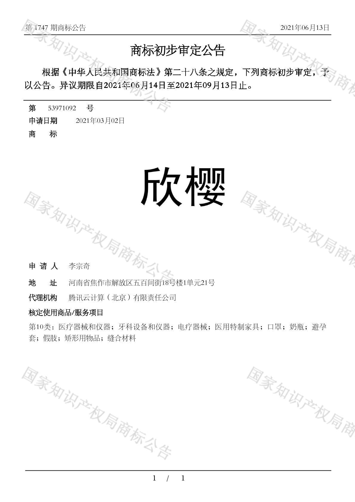 有效期限:2031-09-13 组合类型:中文注册号:53971092