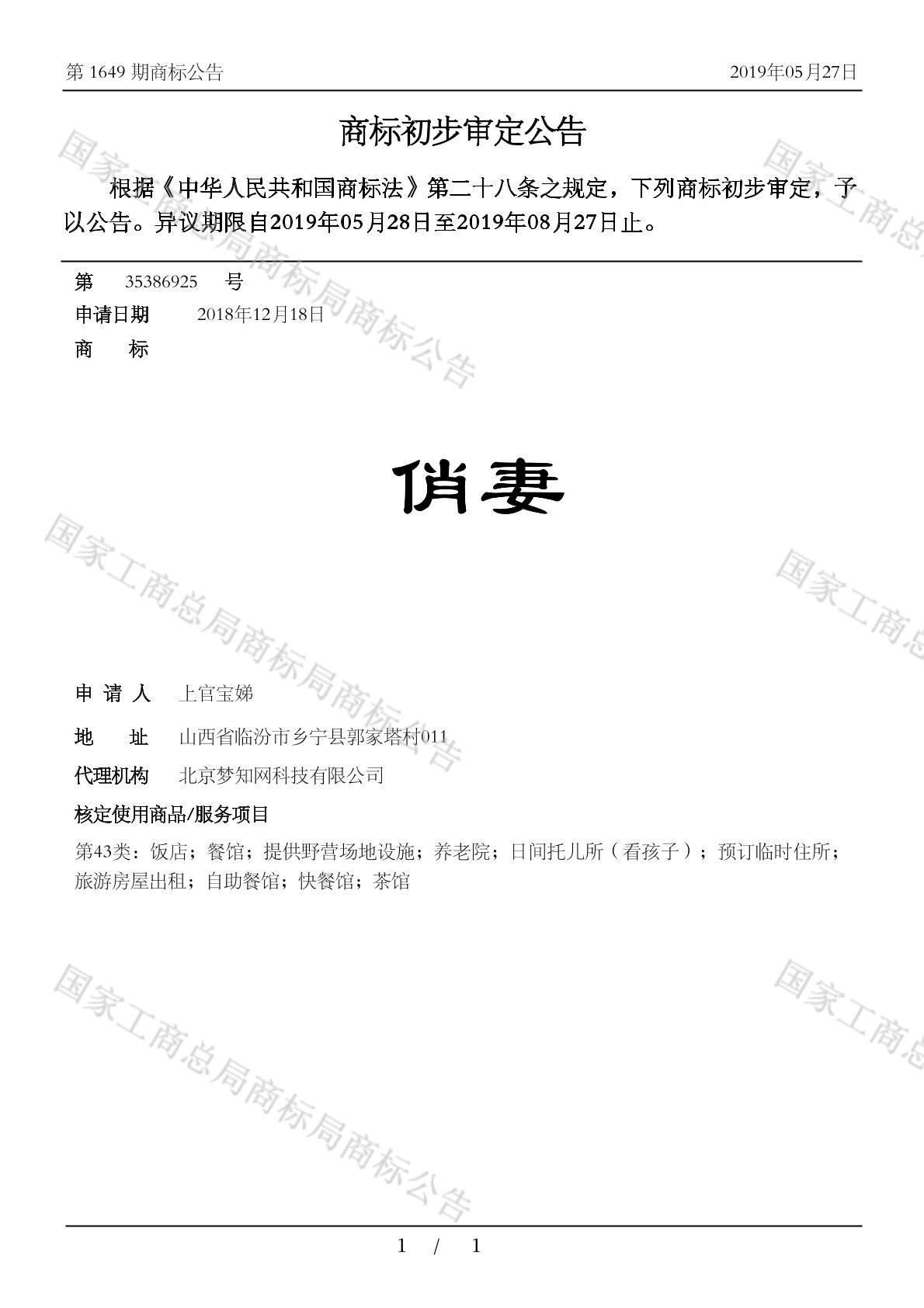 初审公告日期:2019-05-27