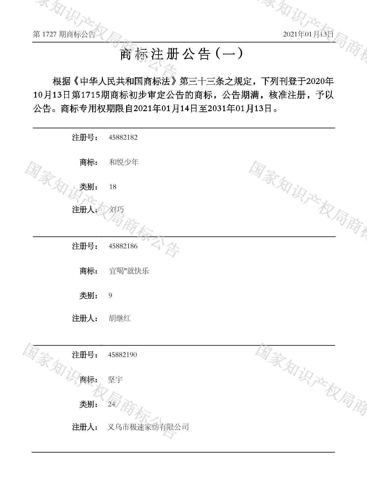 注册公告期号:1727