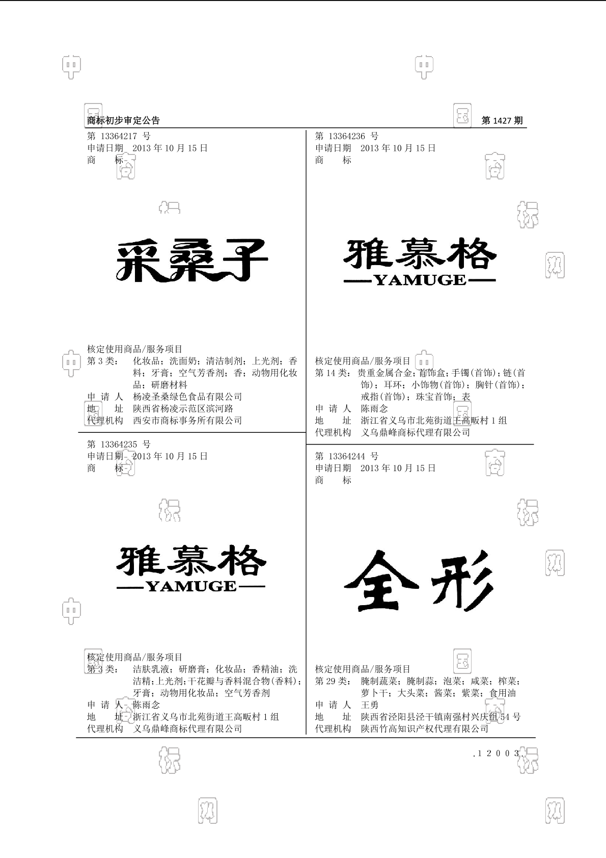 初审公告期号:1427
