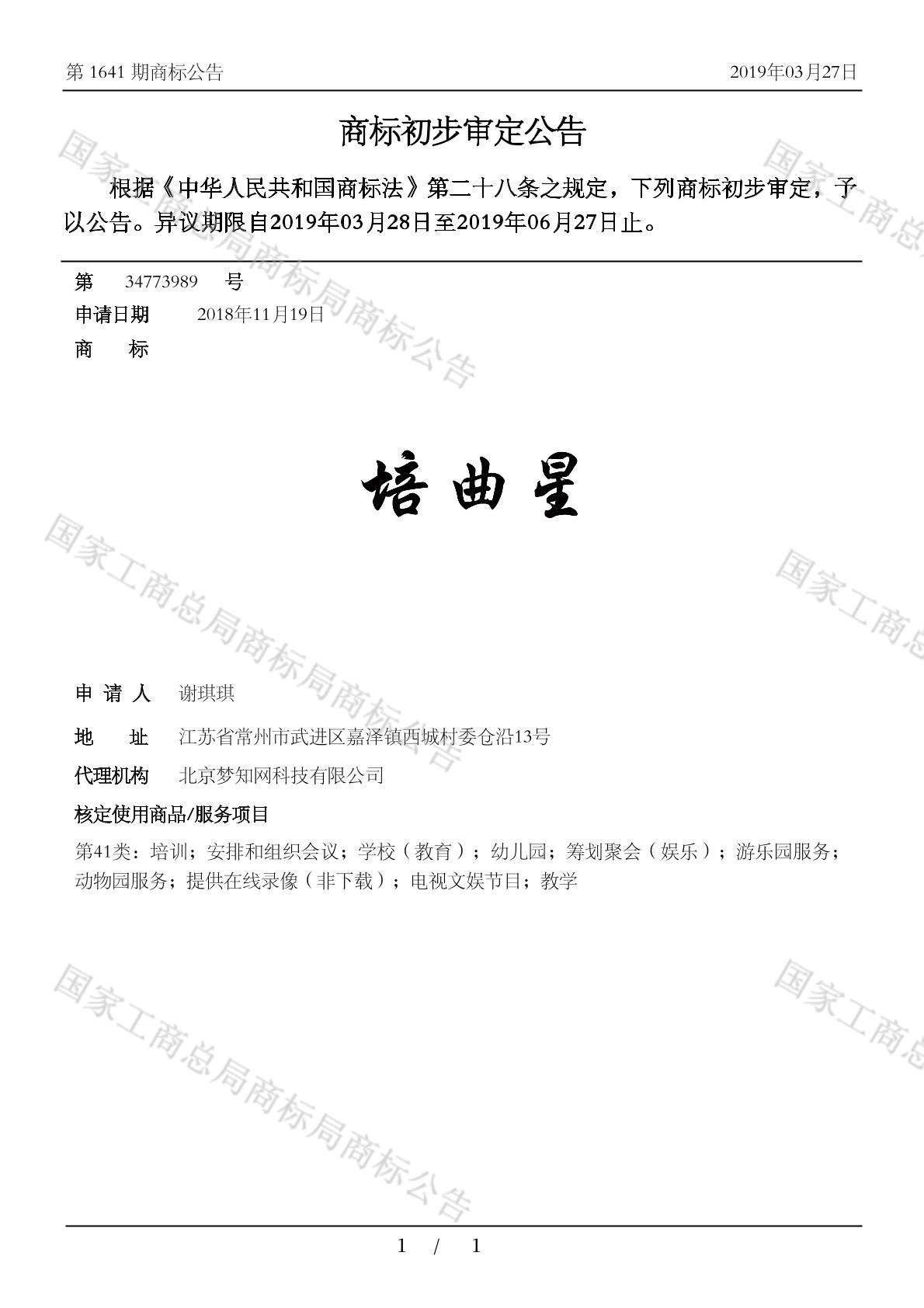 有效期限:2029-06-27 组合类型:中文注册号:34773989