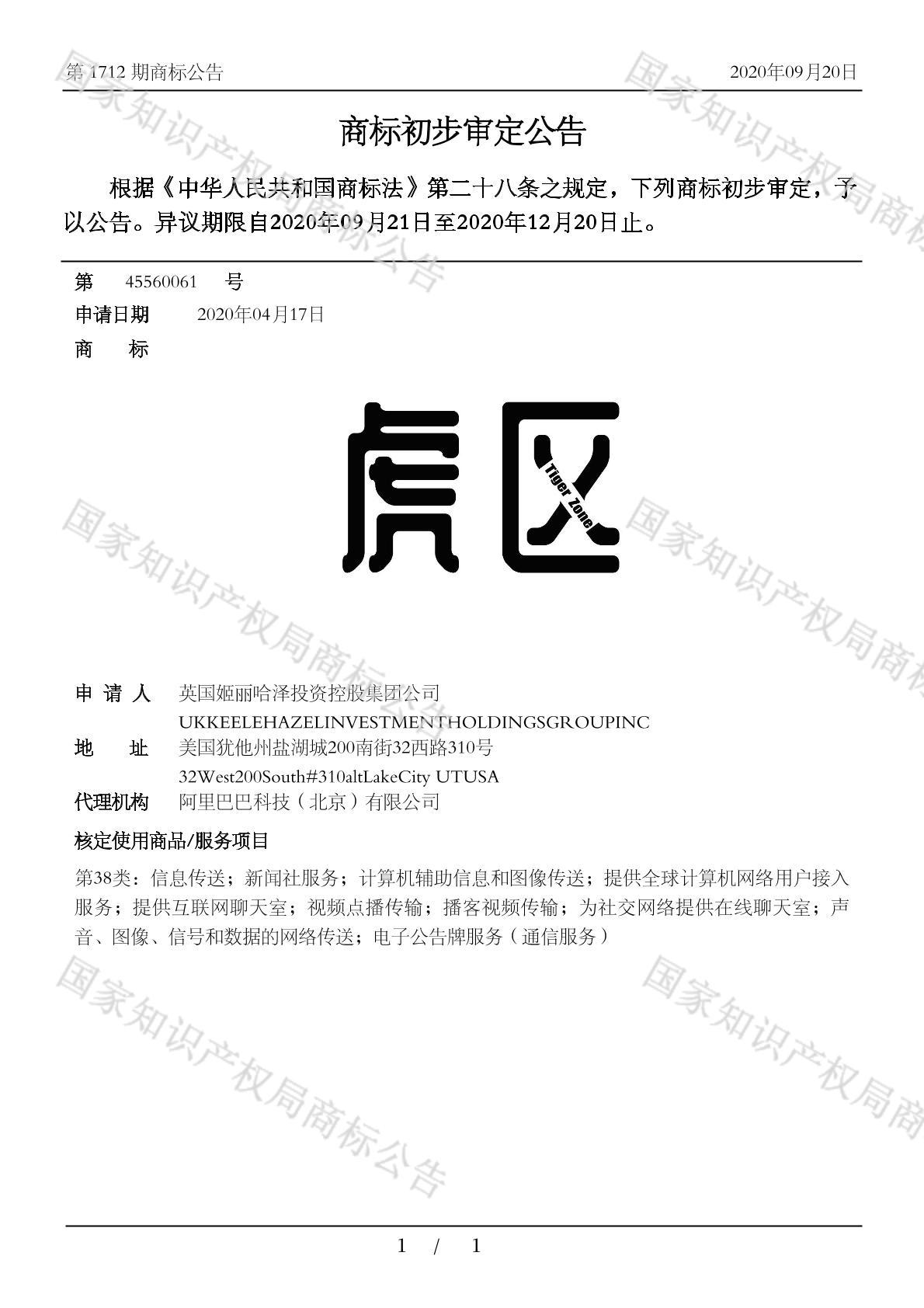 有效期限:2030-12-20 组合类型:中文注册号:45560061
