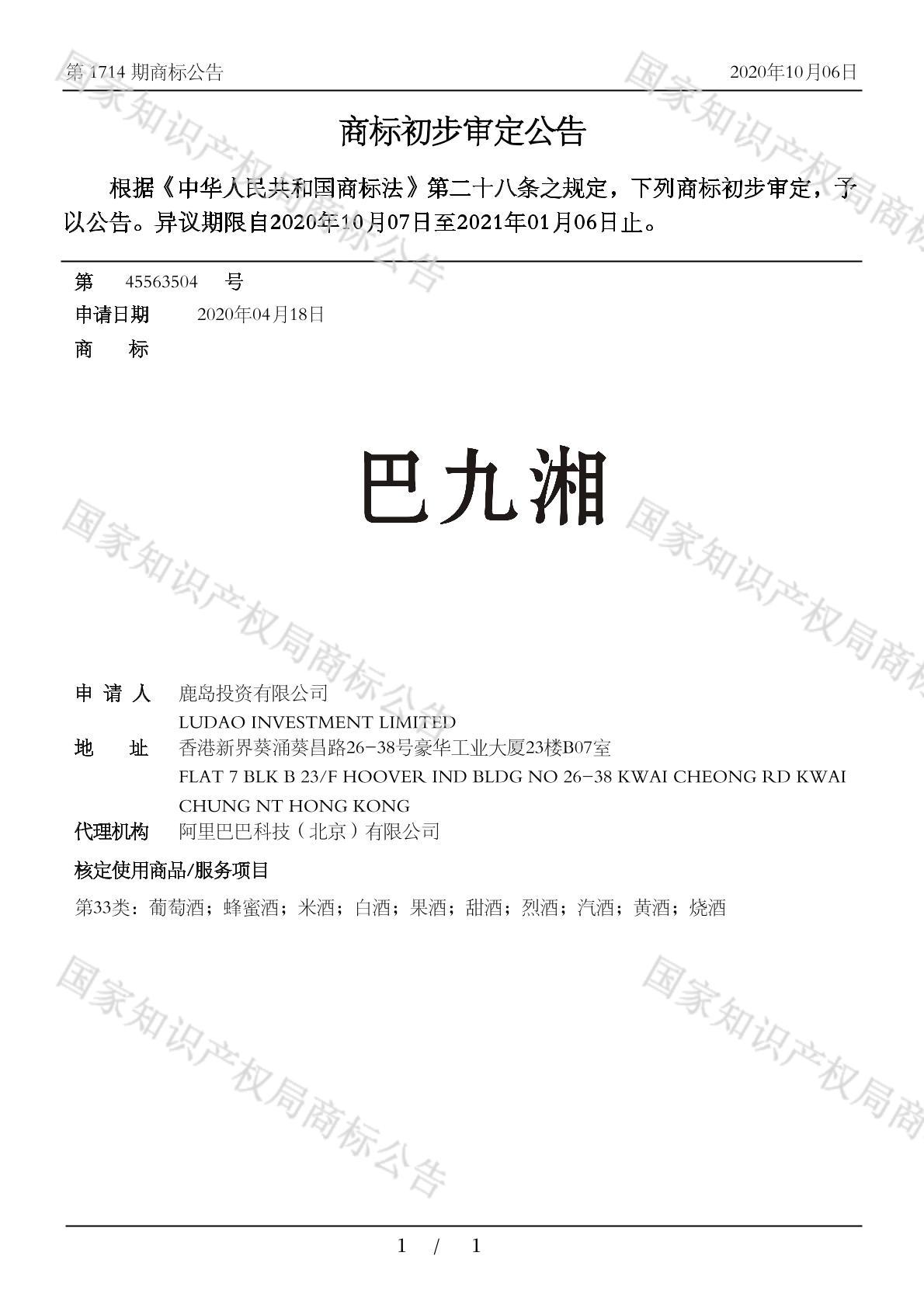 初审公告日期:2020-10-06