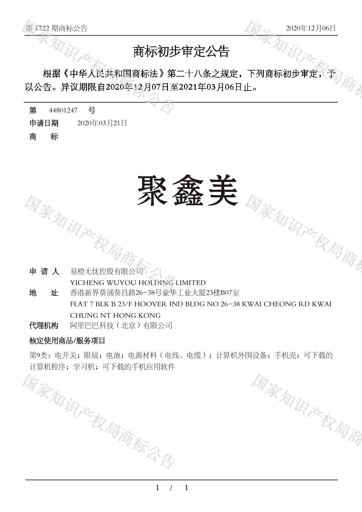 有效期限:2031-03-06 组合类型:中文注册号:44801247