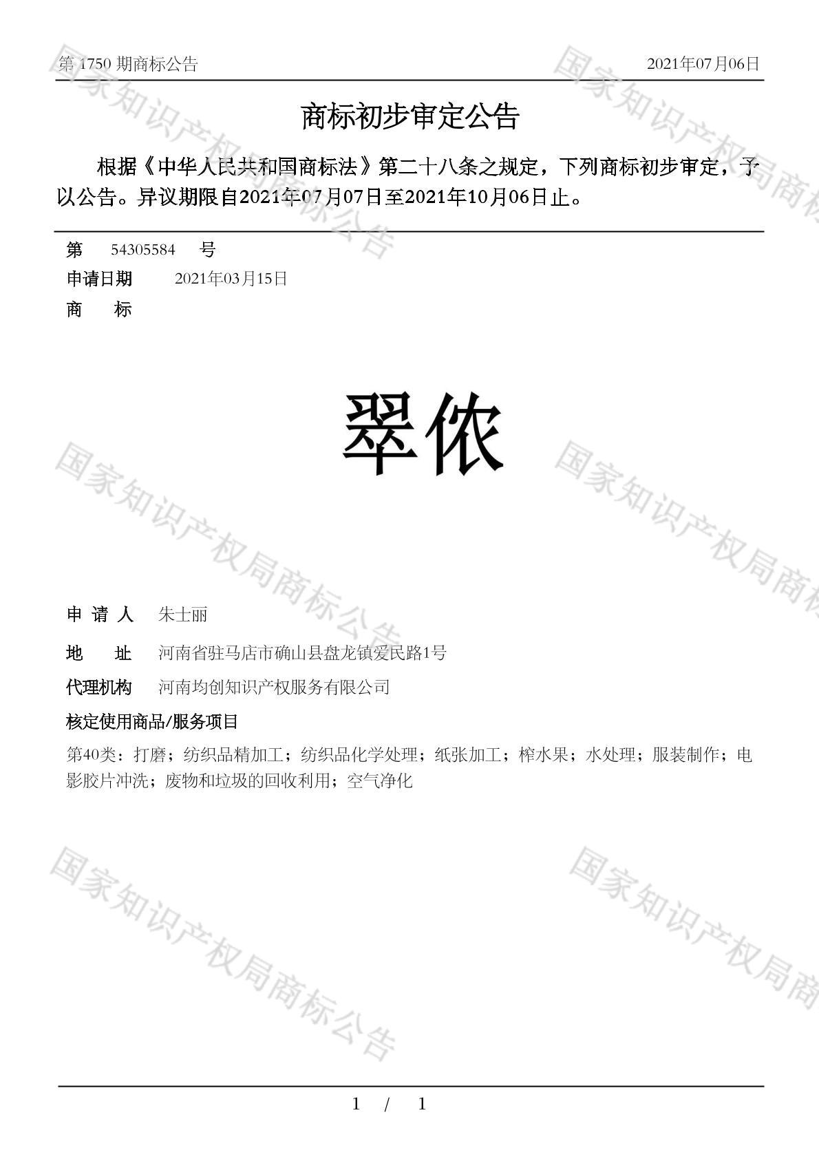 初审公告期号:1750