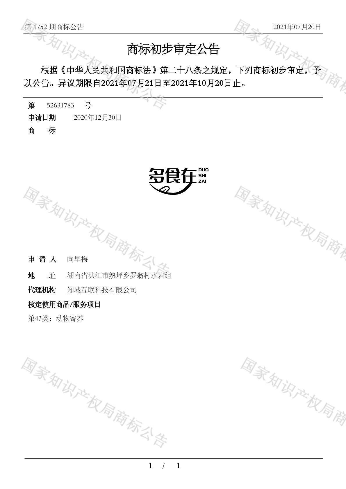 有效期限:2031-10-20 组合类型:中文注册号:52631783