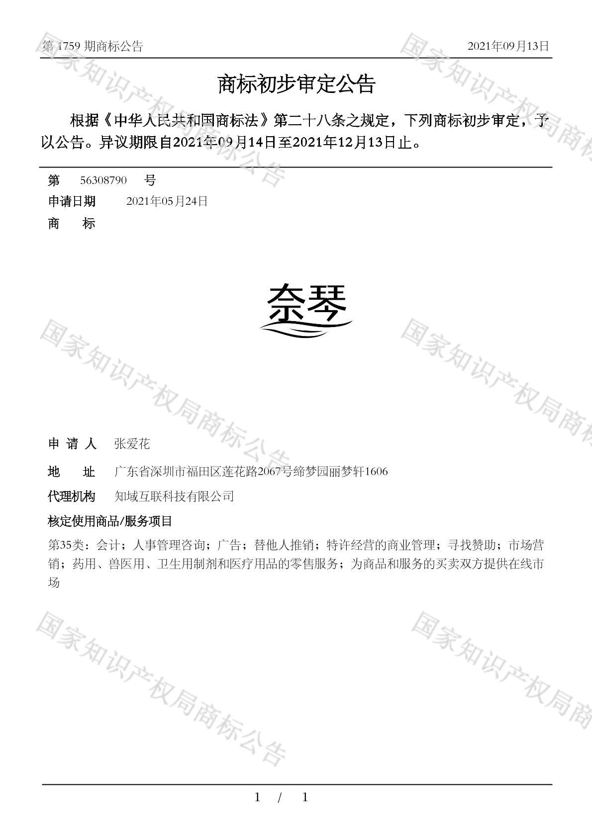 有效期限:2031-12-13 组合类型:中文注册号:56308790