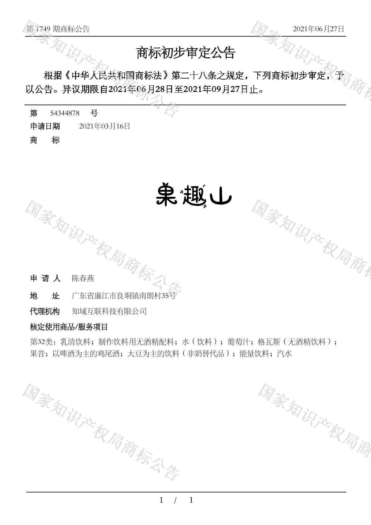 初审公告日期:2021-06-27