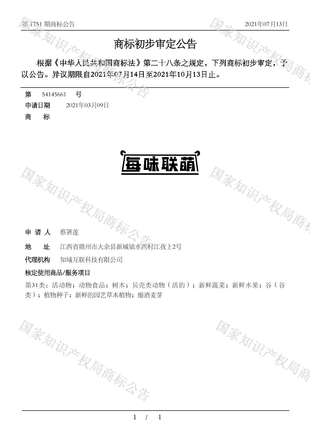您当前位置:首页商标转让31类商标每味联萌