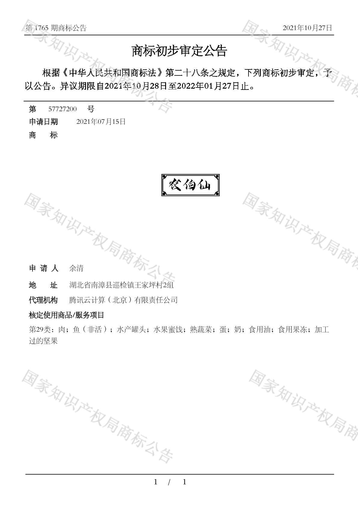 初审公告期号:1765