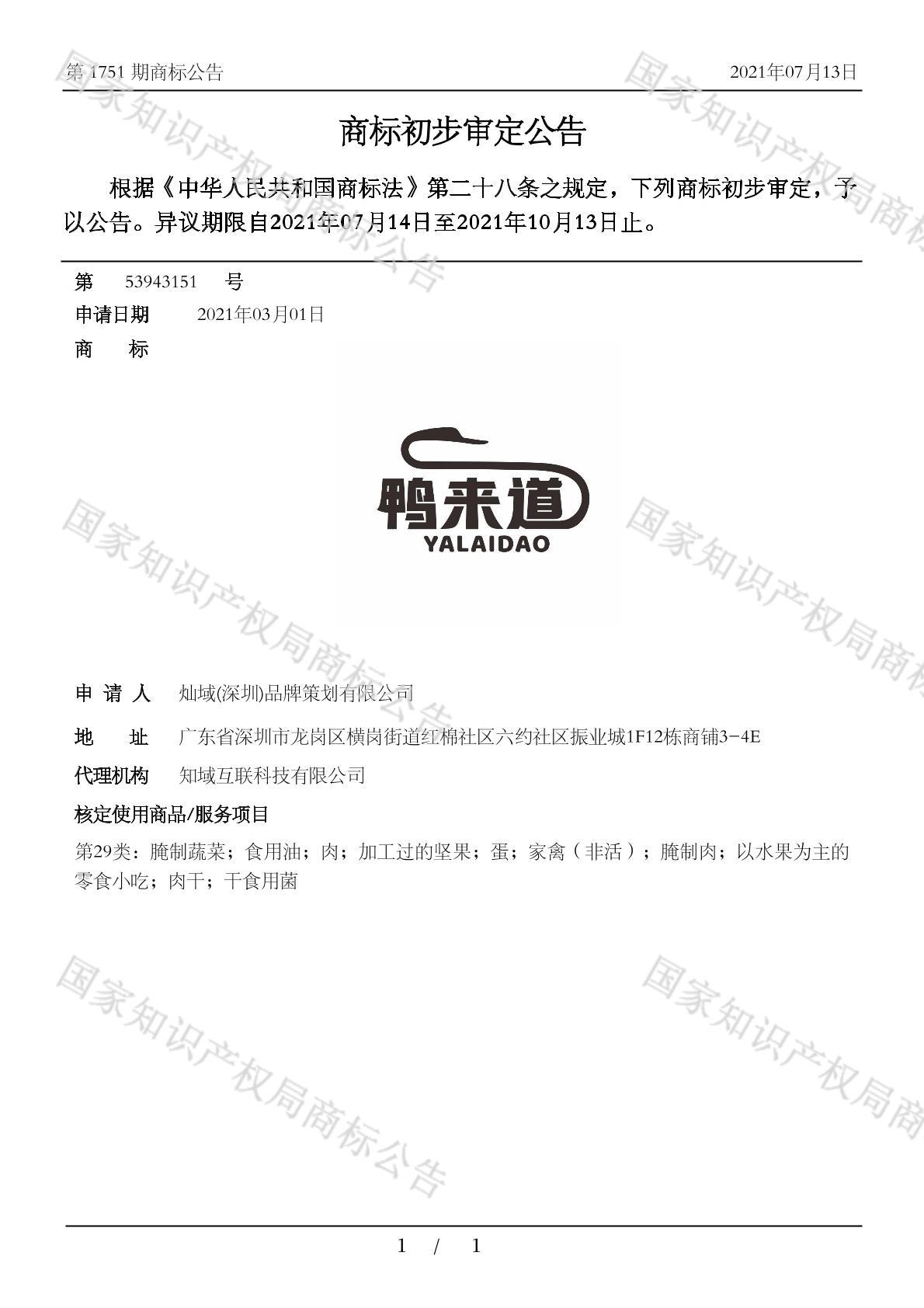 有效期限:2031-10-13 组合类型:中文注册号:53943151