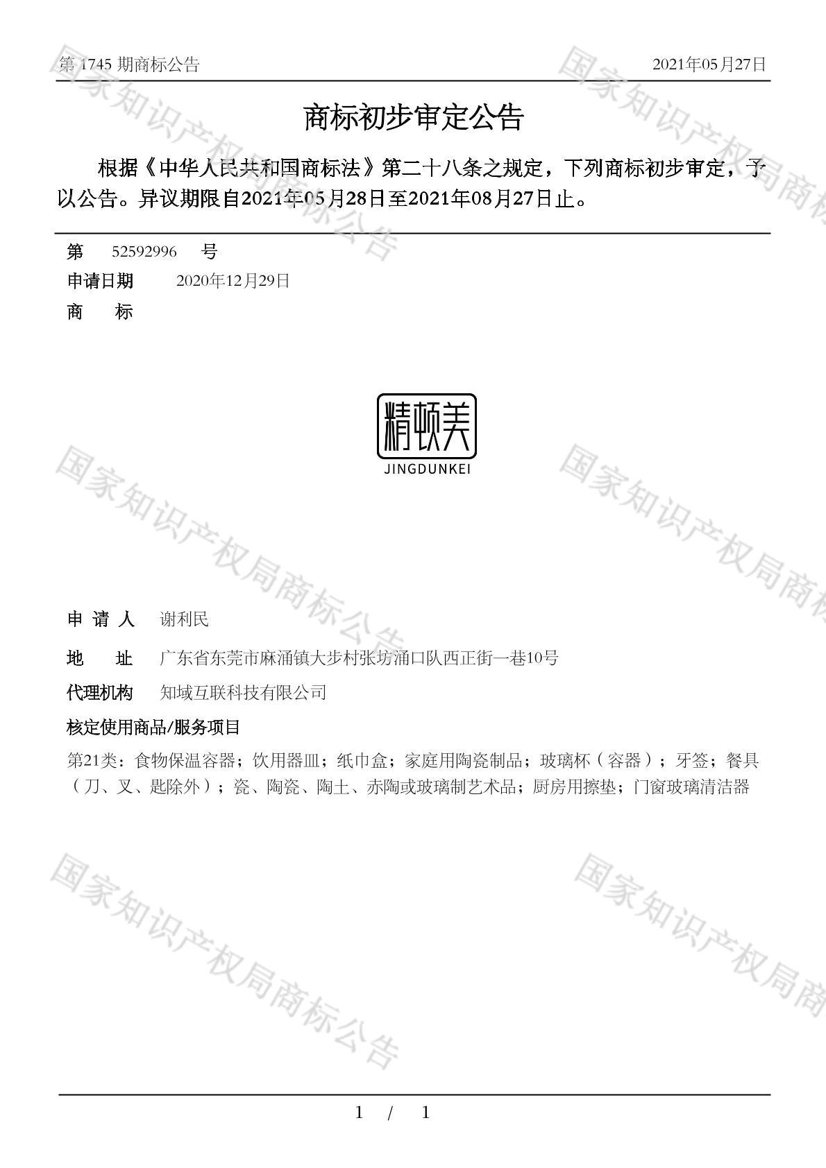 有效期限:2031-08-27 组合类型:中文注册号:52592996