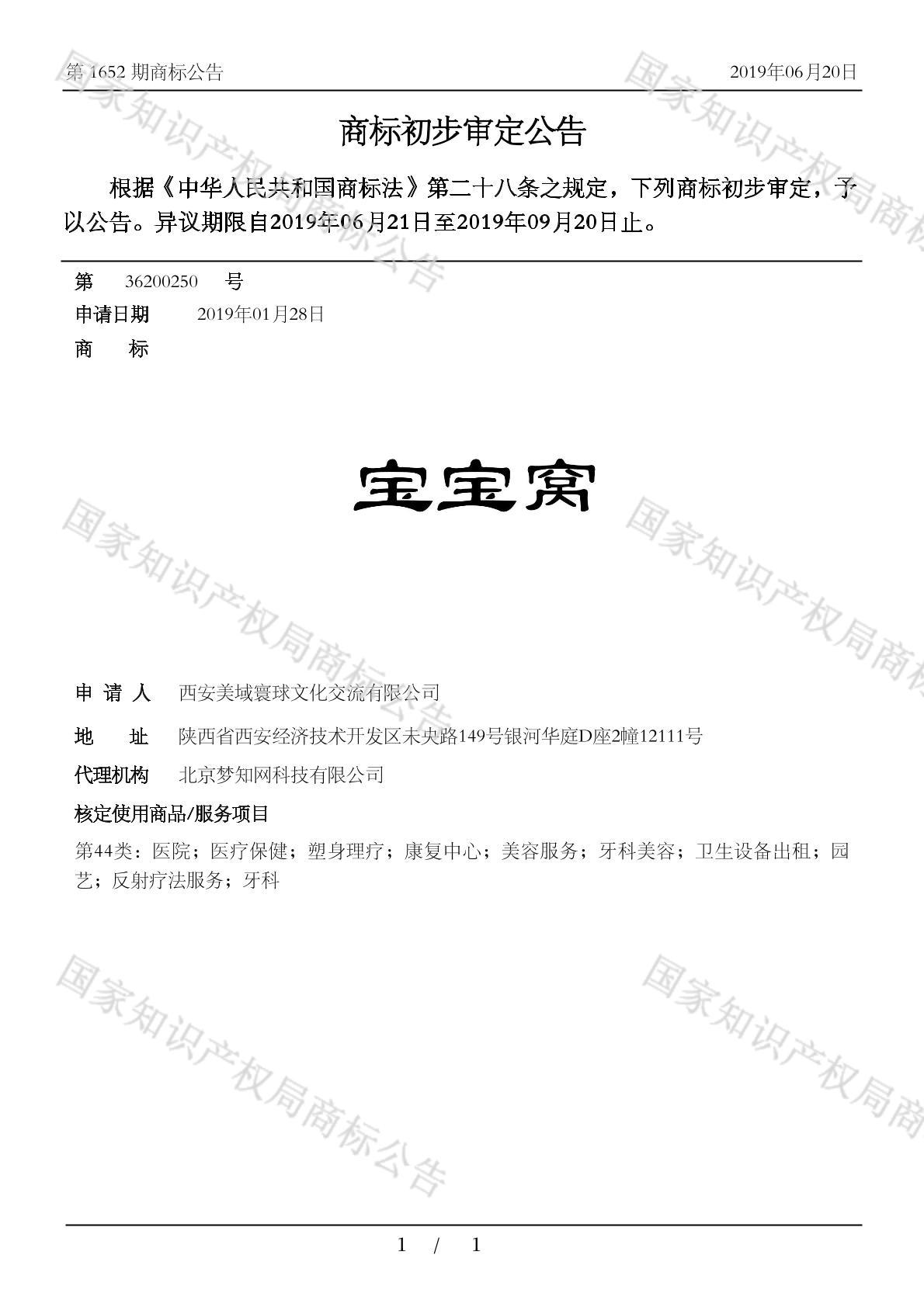 有效期限:2029-09-20 组合类型:中文注册号:36200250