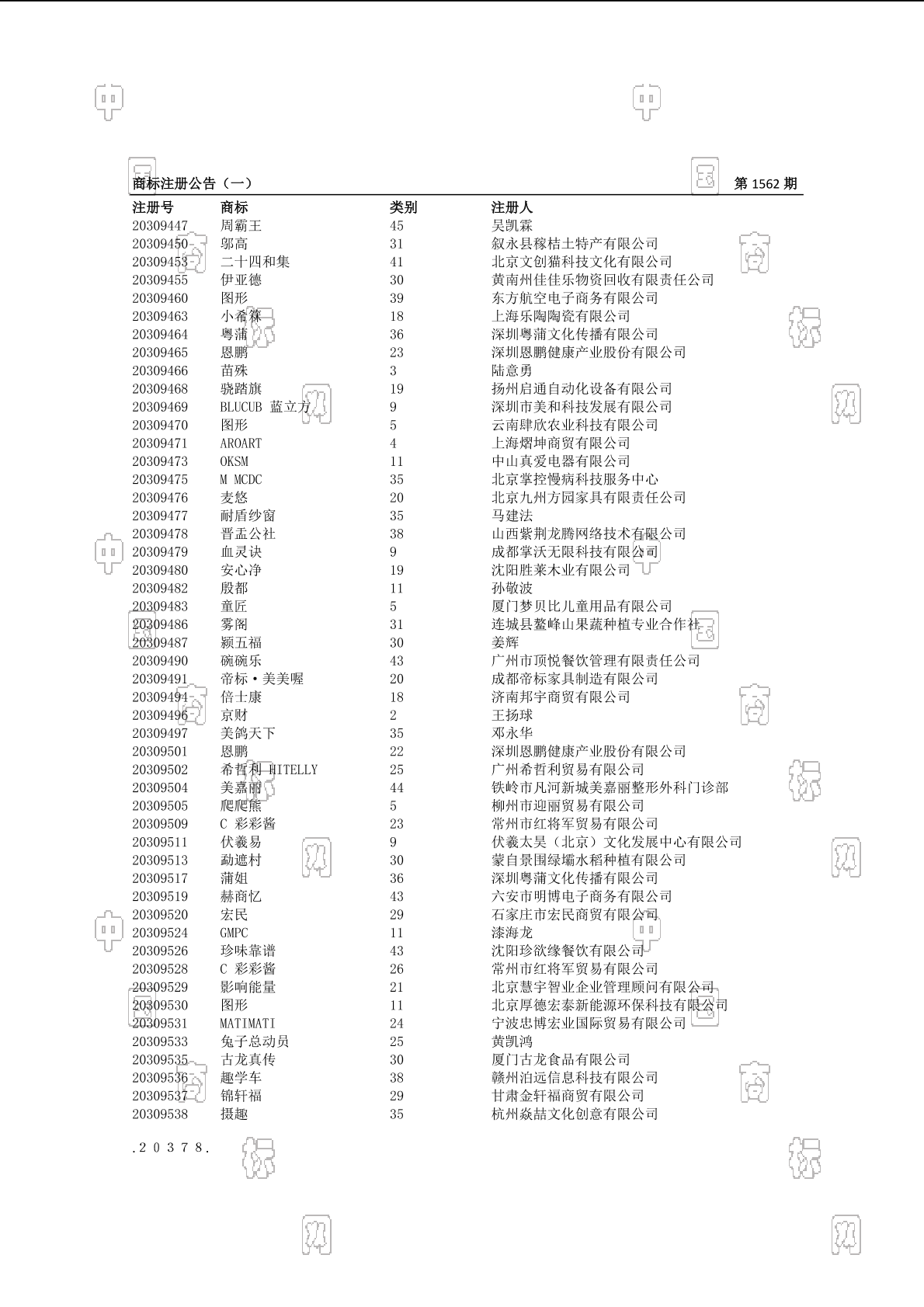 注册公告期号:1562