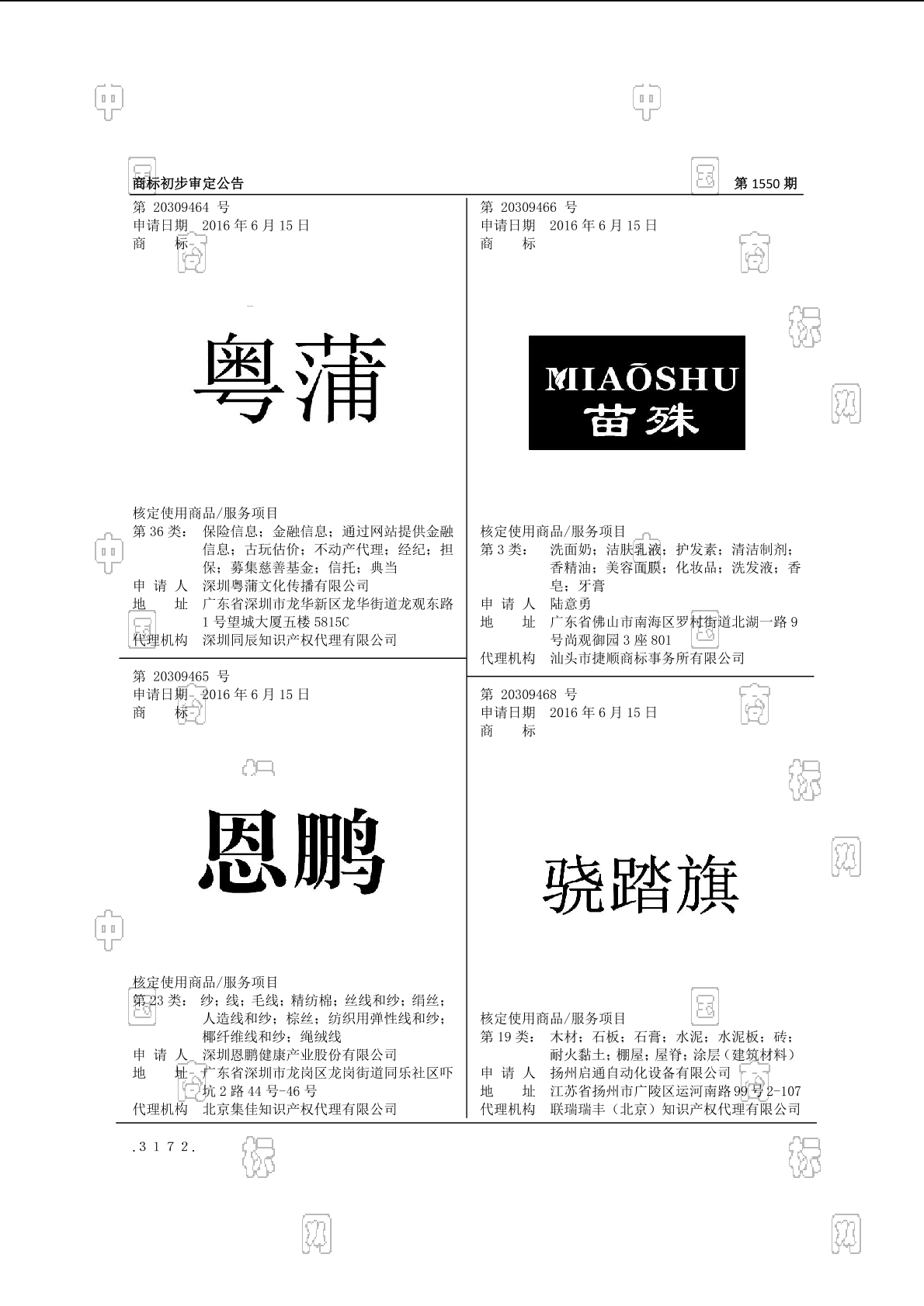 初审公告期号:1550